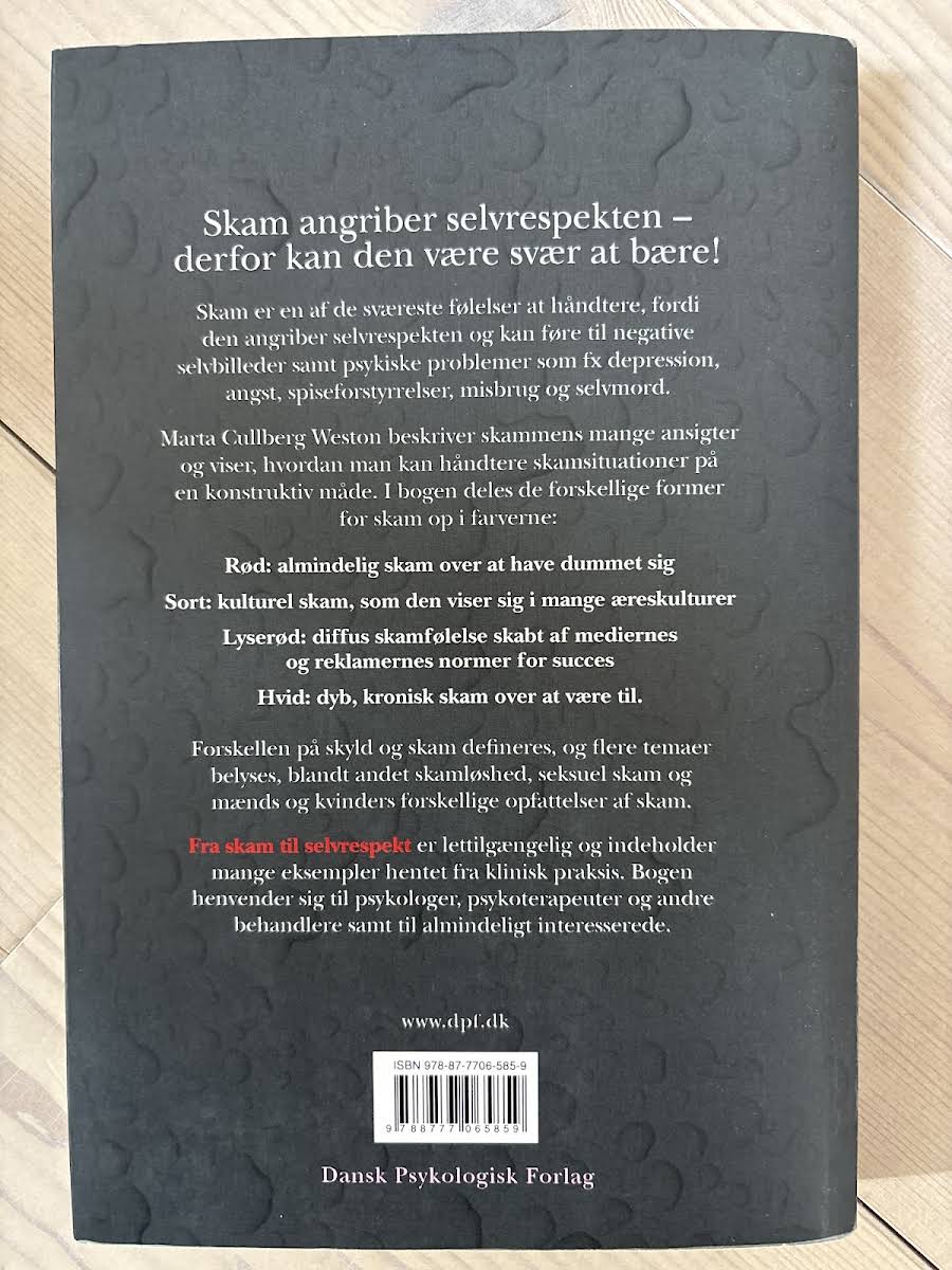 Skam er en af de mest udfordrende følelser, fordi den undergraver vores selvrespekt og kan føre til alvorlige psykiske problemer som depression, angst, spiseforstyrrelser, misbrug og selvmord. Uden bevidsthed om skammens rolle kan den nemt styre vores liv i det skjulte. I Fra skam til selvrespekt guider psykolog og psykoterapeut Marta Cullberg Weston dig gennem skammens fire farver og deres særlige karakteristika: Rød skam - almindelig skam over fejltrin. Sort skam - kulturel skam i æreskulturer. Lyserød skam - diffuse normer fra medier og reklamer. Hvid skam - dyb, kronisk skam over selve eksistensen. Bogen er både indsigtsfuld og praktisk med talrige eksempler fra klinisk praksis. Den giver dig konkrete redskaber til at konfrontere og bearbejde din skam, så du kan genvinde selvrespekt og bruge skamfulde oplevelser konstruktivt i stedet for at lade dem definere dit liv.