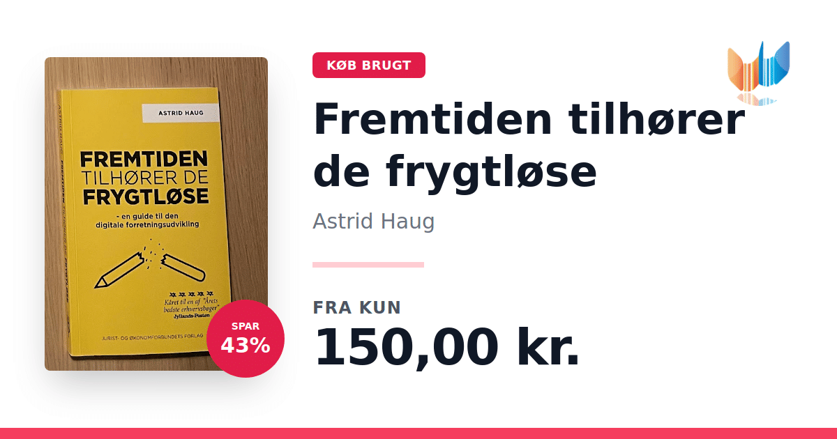 Lige nu kan du købe "Fremtiden tilhører de frygtløse" af Astrid Haug til kun 150,00 kr. Du sparer hele 43% af nyprisen! Bogen du ser her er brugt, og i perfekt stand. Vi har i øjeblikket kun et enkelt eksemplar til salg af "Fremtiden tilhører de frygtløse", så slå til mens du kan!