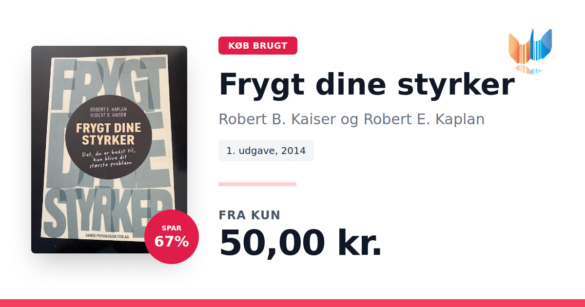 Lige nu kan du købe "Frygt dine styrker" af Robert B. Kaiser og Robert E. Kaplan til kun 50,00 kr. Du sparer hele 67% af nyprisen! Bogen du ser her er brugt, og i god stand. Vi har i øjeblikket kun et enkelt eksemplar til salg af "Frygt dine styrker", så slå til mens du kan!
