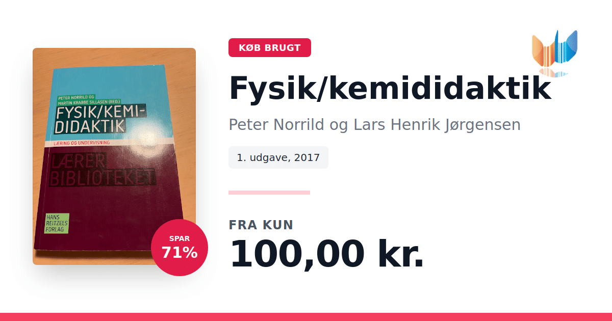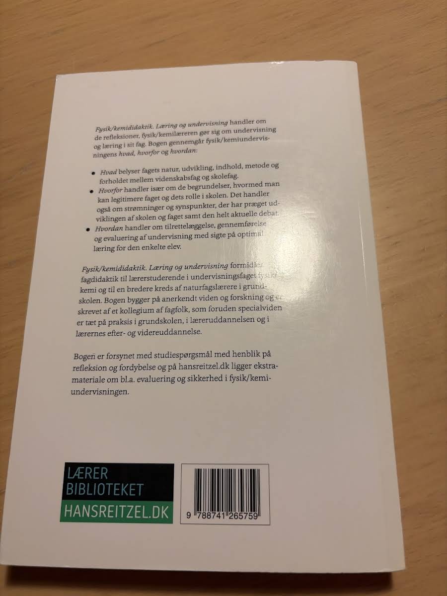 Fysik/kemididaktik. Læring og undervisning stiller skarpt på de refleksioner, som lærere i fysik/kemi gør sig i arbejdet med at skabe god undervisning og læring i deres fag. Bogen undersøger, hvad der karakteriserer fysik/kemiundervisningen, hvorfor faget har sin væsentlige rolle i skolen, og hvordan man bedst tilrettelægger, gennemfører og evaluerer undervisningen. Med fokus på faget naturvidenskab kaster bogen lys over fysik/kemiens natur, udvikling, indhold og metode, og den diskuterer forholdet mellem videnskabsfag og skolefag. Derudover redegøres der for de argumenter, der underbygger fagets legitimitet samt de strømninger og debatter, der har påvirket både fagen og skolens udvikling. Bogen henvender sig til lærerstuderende i undervisningsfaget samt til naturfagslærere i grundskolen og bygger på anerkendt forskning og praksiserfaring. Den er udarbejdet af et kollegium af eksperter, der ud over specialviden har et nært forhold til undervisningen i skolen, på læreruddannelsen og i den pædagogiske efter- og videreuddannelse. Med studierelaterede spørgsmål og ekstramateriale, blandt andet om evaluering og sikkerhed i undervisningen, understøttes læseren i at skabe en dybere forståelse af fagdidaktikken.