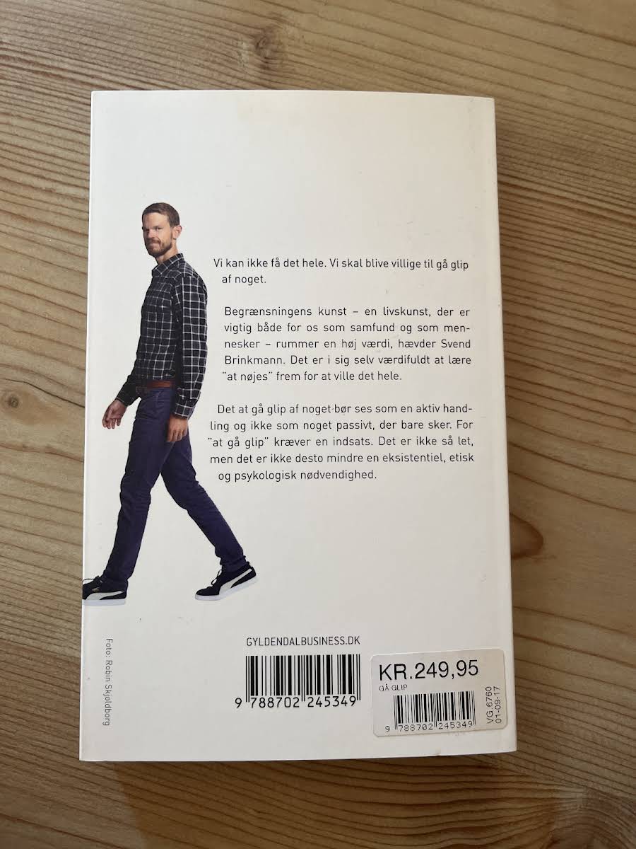 Lige nu kan du købe "Gå glip" af Svend Brinkmann til kun 66,00 kr. Du sparer hele 69% af nyprisen! Bogen du ser her er brugt, og i god stand. Vi har i øjeblikket kun et enkelt eksemplar til salg af "Gå glip", så slå til mens du kan!