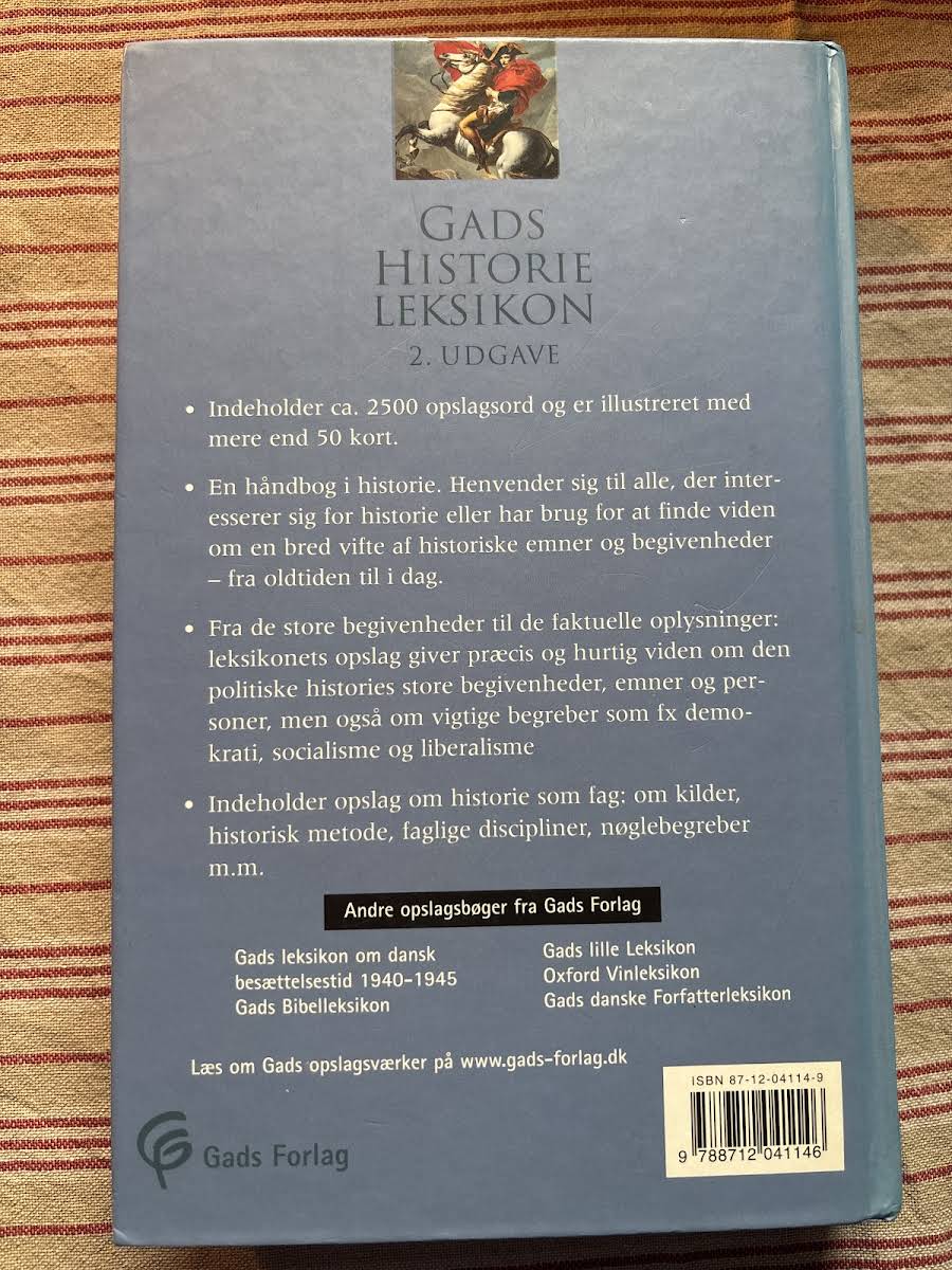 Gads Historieleksikon, 2. udgave fra 2006, byder på over 2.500 opslag og cirka 50 kort, som tilsammen udgør et omfattende overblik over historiske emner og centrale nøglebegreber. Denne opdaterede udgave inkluderer ca. 30 nye opslag og over 300 reviderede indlæg, hvilket sikrer, at al information er aktuel og relevant. Leksikonet giver læseren hurtig og præcis viden om alt fra de store politiske begivenheder til de faglige nøglekoncept. Fra oldtidens magthavere til nutidens demokrati, liberalisme og socialisme – alle facetter af historien kommer til udtryk i detaljerede og velstrukturerede opslag. Det gør bogen til et uundværligt redskab for både studerende og alle med en passion for historie.