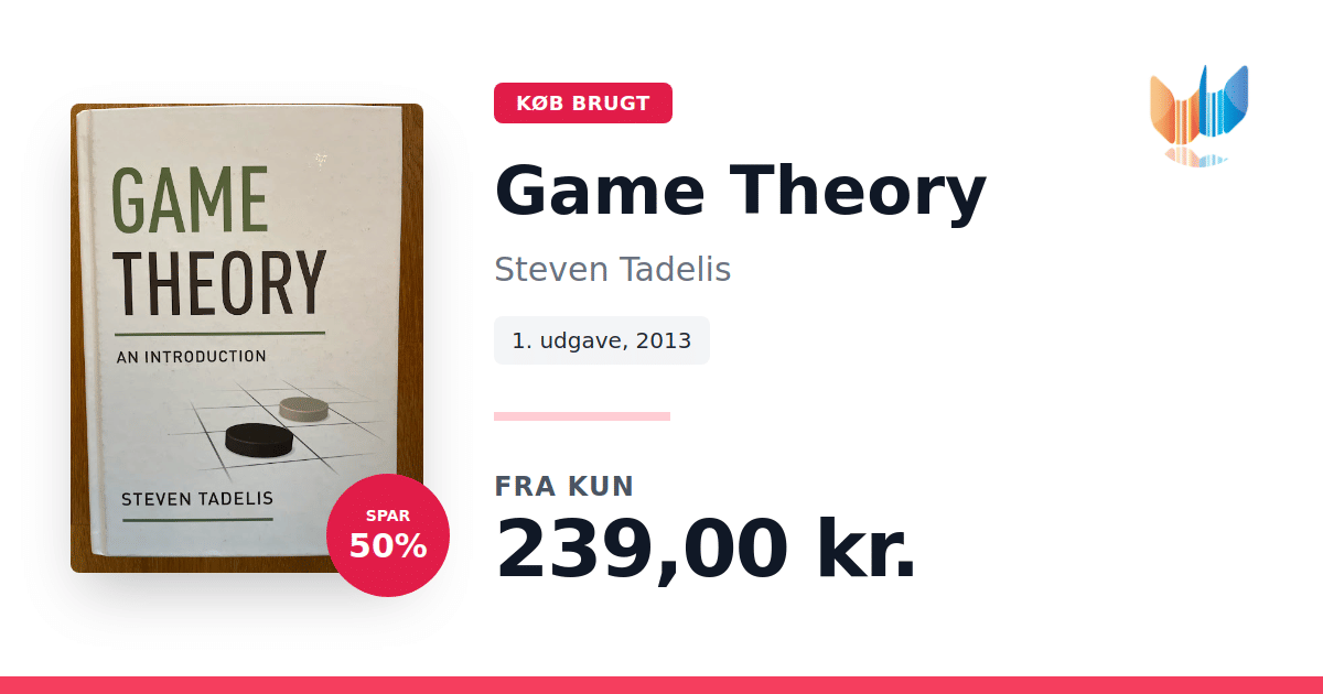 Lige nu kan du købe "Game Theory" af Steven Tadelis til kun 239,00 kr. Du sparer hele 50% af nyprisen! Bogen du ser her er brugt, og i god stand. Vi har i øjeblikket kun et enkelt eksemplar til salg af "Game Theory", så slå til mens du kan!