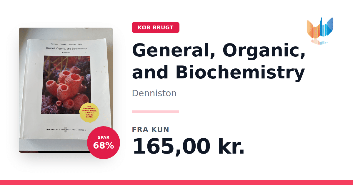 "General, Organic and Biochemistry" er et læremiddel målrettet studerende inden for sundheds- og biovidenskab samt alle andre uddannelser, der har behov for en grundlæggende forståelse af kemi i relation til sygdom og behandling. Bogen præsenterer centrale begreber og de mest væsentlige kemiske forbindelser på en klar og tilgængelig måde. Teksten balancerer teori og praktisk kemi, så studerende kan anvende centrale principper i både laboratorie- og kliniske sammenhænge. Forklaringerne er tilrettelagt med fokus på de aspekter af kemi, der er mest relevante for dem, hvis faglige mål ikke nødvendigvis kræver fuld beherskelse af faget. Denne 8. udgave, udgivet i 2013 af McGraw-Hill Education - Europe, omfatter 928 sider i paperbackformat og er forfattet af Katherine J. Denniston. Den fungerer som solid grundbog for alle, der ønsker en indføring i almen, organisk og biokemi.