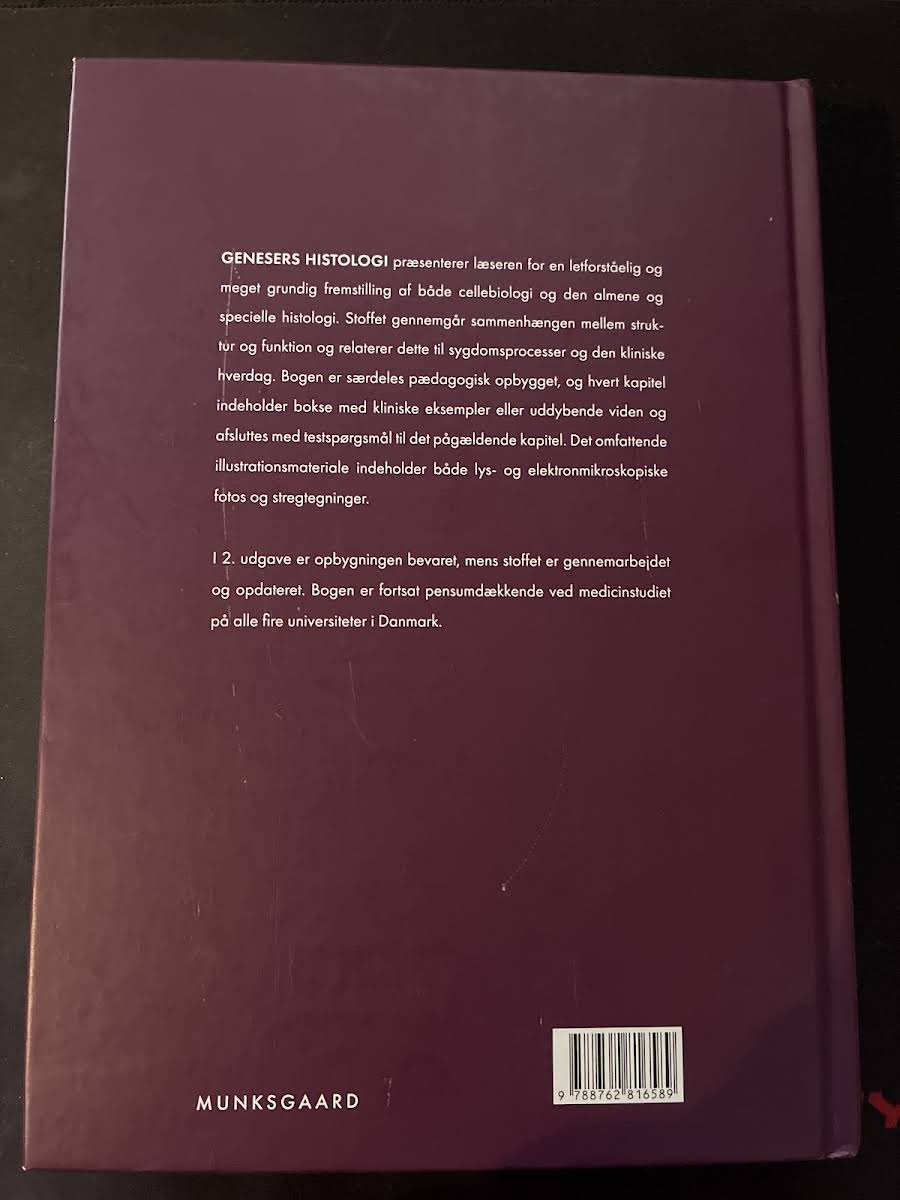 "Genesers histologi" er en alsidig og pædagogisk håndbog, der tilbyder en dybdegående indføring i cellebiologi og histologi. Bogen forklarer klart og præcist sammenhængen mellem cellers struktur og funktion samt deres betydning i forbindelse med sygdomsprocesser og kliniske eksempler. Denne 2020 udgave bygger videre på den velkendte opbygning fra tidligere udgaver og leverer både grundlæggende og specialiseret viden til medicinstuderende. Hvert kapitel er nøje tilrettelagt med undervisningsvenlige elementer såsom kliniske eksempler, uddybende forklaringer og afsluttende testspørgsmål, der sikrer en effektiv læringsproces. Det omfattende illustrationsmateriale består af både lys- og elektronmikroskopiske billeder samt stregtegninger, som understøtter den teoretiske gennemgang og gør materialet letforståeligt. Forfatterteamet bestående af Finn Geneser, René Villadsen, Annemarie Brüel, Jørgen Tranum-Jensen, Klaus Qvortrup, Erik Ilsø Christensen, Jeppe Praetorius og Mikkel Eld har med denne hardcover-udgave skabt et pålideligt redskab, der fortsat dækker pensummet på medicinstudiet og møder de studerendes behov for opdateret og grundig introduktion til histologi.