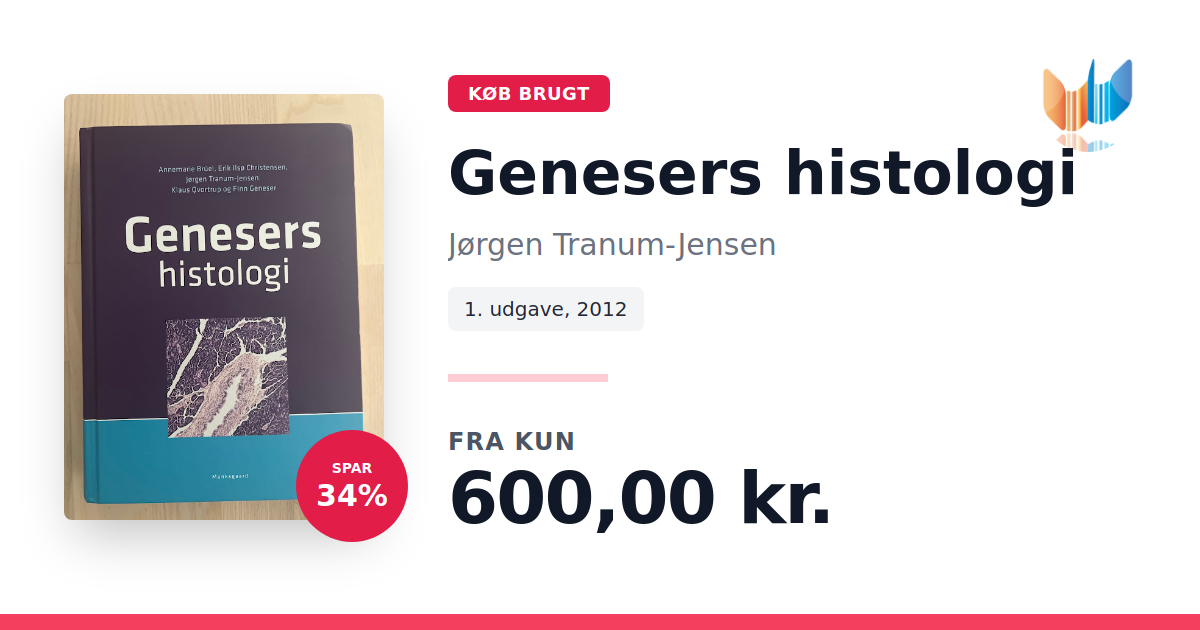 Lige nu kan du købe "Genesers histologi" af Jørgen Tranum-Jensen til kun 600,00 kr. Du sparer hele 34% af nyprisen! Bogen du ser her er brugt, og i perfekt stand. Vi har i øjeblikket 3 eksemplarer til salg af "Genesers histologi", så husk at se de forskellige udgaver.
