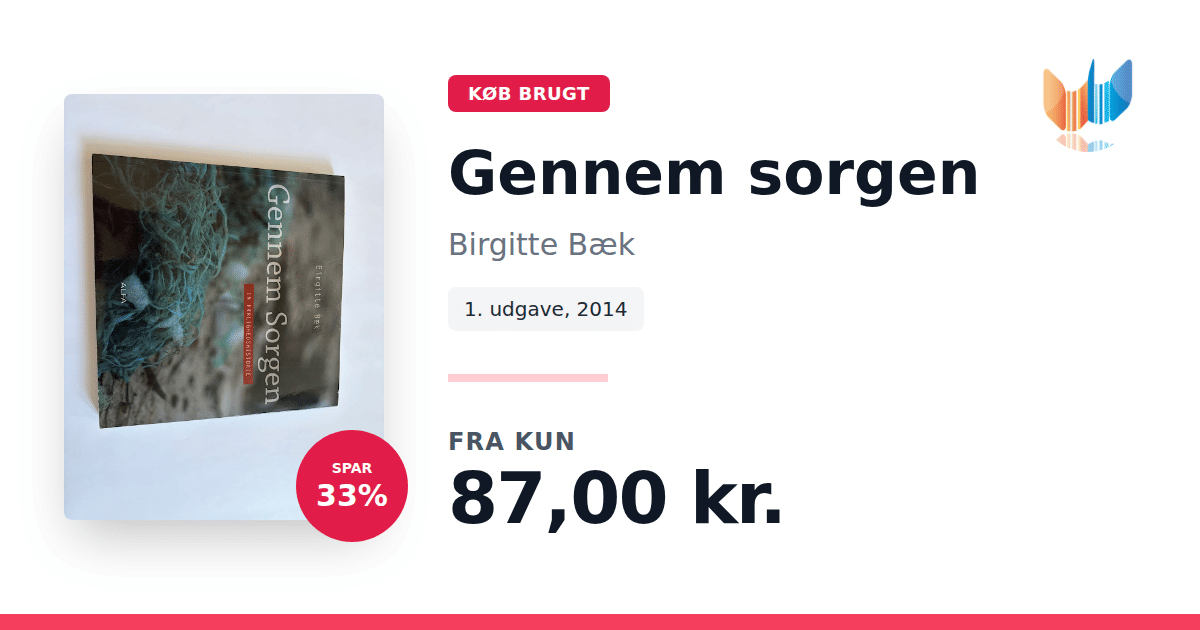 Lige nu kan du købe "Gennem sorgen" af Birgitte Bæk til kun 87,00 kr. Du sparer hele 33% af nyprisen! Bogen du ser her er brugt, og i perfekt stand. Vi har i øjeblikket kun et enkelt eksemplar til salg af "Gennem sorgen", så slå til mens du kan!