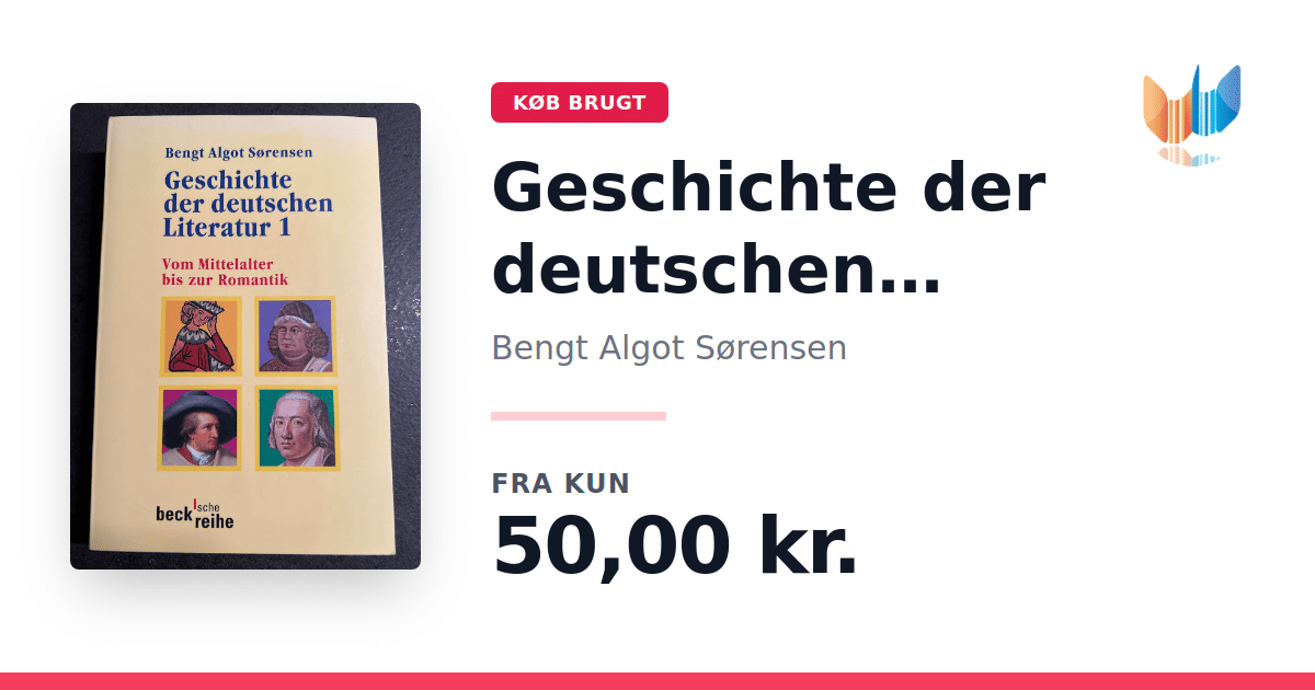 Lige nu kan du købe "Geschichte der deutschen Literatur 1" af Bengt Algot Sørensen til kun 50,00 kr. Bogen du ser her er brugt, og i god stand. Vi har i øjeblikket kun et enkelt eksemplar til salg af "Geschichte der deutschen Literatur 1", så slå til mens du kan!