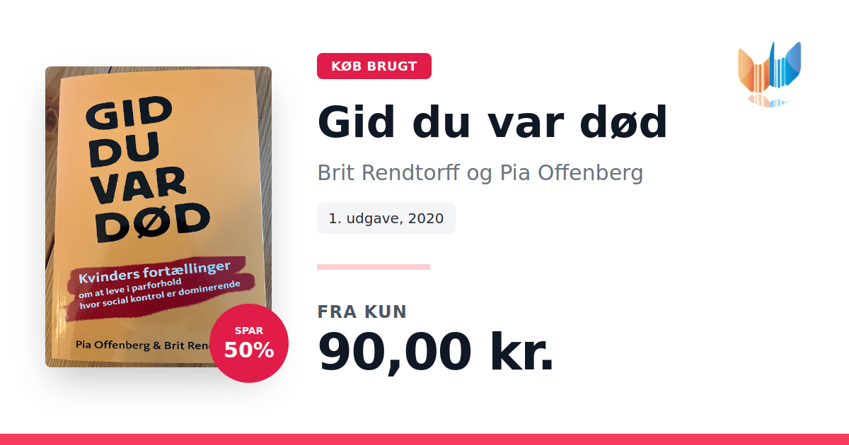 Lige nu kan du købe "Gid du var død" af Brit Rendtorff og Pia Offenberg til kun 90,00 kr. Du sparer hele 50% af nyprisen! Bogen du ser her er brugt, og i perfekt stand. Vi har i øjeblikket kun et enkelt eksemplar til salg af "Gid du var død", så slå til mens du kan!