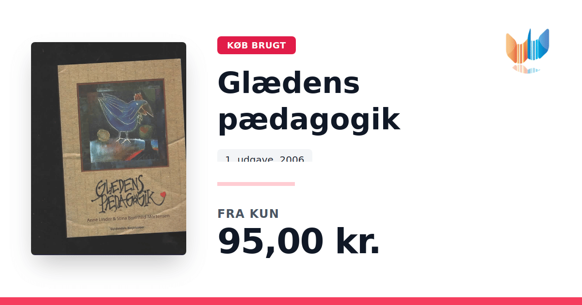 Lige nu kan du købe "Glædens pædagogik" til kun 95,00 kr. Bogen du ser her er brugt, og i perfekt stand. Vi har i øjeblikket 2 eksemplarer til salg af "Glædens pædagogik", så husk at se de forskellige udgaver.