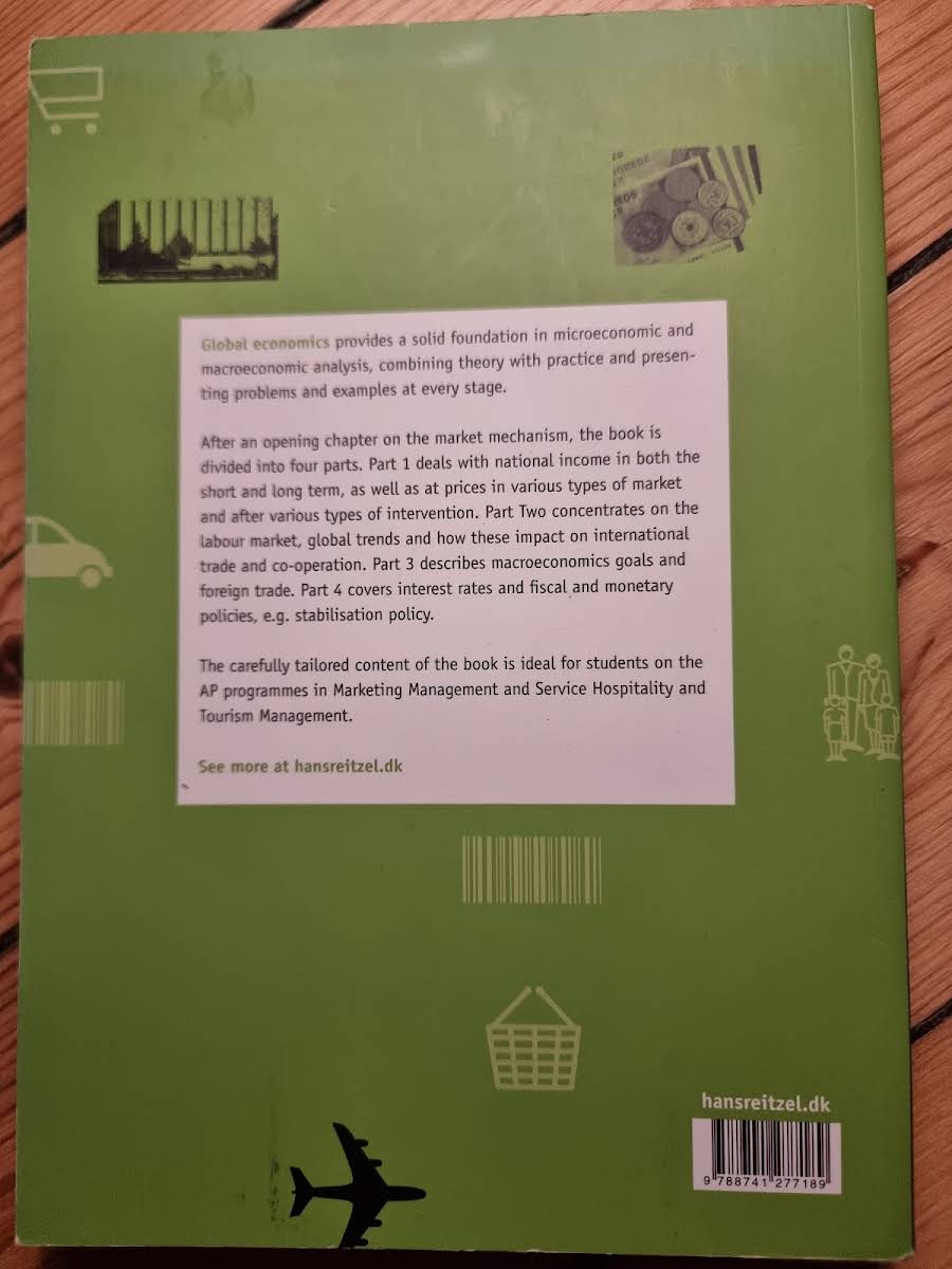 Global Economics er en oversættelse af Globaløkonomi til marketing og service, baseret på principperne fra Makroøkonomi – i teori og praksis samt Mikroøkonomi – videregående uddannelser. Bogen er tilpasset den nye studieordning for markedsføringsøkonomer og serviceøkonomer og giver både studerende og praktikere solide værktøjer til at forstå og analysere mikroøkonomiske problemstillinger samt de overordnede samfundsøkonomiske sammenhænge. Teorien forklares med udgangspunkt i virkelighedsnære eksempler, der gør den komplekse økonomiske diskurs tilgængelig og relevant. Bogen indledes med et kapitel om økonomisk analyse og fortsætter herefter i fire velstrukturerede dele. Den første del fokuserer på prisdannelsen under forskellige markedssituationer og i lyset af offentlige indgreb. Anden del behandler arbejdsmarkedet og den globale udvikling, herunder aspekter som international handel og samarbejde. I den tredje del skiftes fokus til de makroøkonomiske mål, nationalindkomsten og udenrigshandelen, før den fjerde del afslutter med en nærmere analyse af rentedannelsen og de økonomiske politiske tiltag, blandt andet struktur- og stabiliseringspolitik. Derudover indeholder bogen supplerende materiale, som yderligere understøtter teorien og dens praktiske anvendelser.