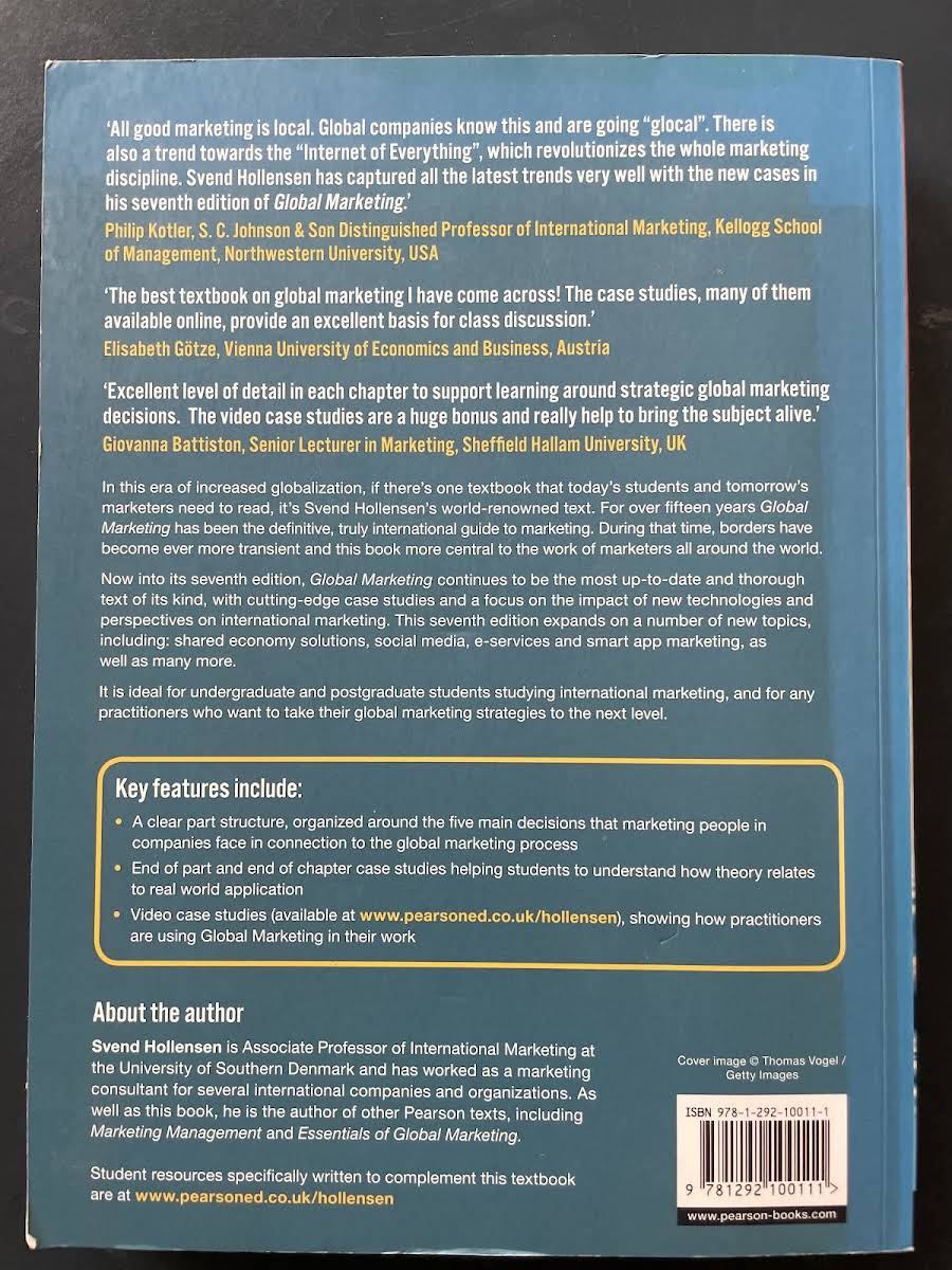 Global Marketing af Svend Hollensen præsenterer en tidssvarende og grundig gennemgang af de fem centrale beslutninger i forbindelse med international marketing. Med fokus på det såkaldte "glocale" perspektiv og tendensen mod Internet of Everything udforsker bogen, hvordan teknologiske fremskridt revolutionerer marketingdisciplinen. I syvende udgave er indholdet opdateret med skarpe, globale cases og tilhørende videoeksempler, som demonstrerer, hvordan virksomheder omsætter teori til praksis. Hvert kapitel afsluttes med cases, der stimulerer kritisk refleksion og klasseundervisning. Nye temaer i denne udgave omfatter delingsøkonomi, sociale medier, e-services og markedsføring via smartwatch-apps. Disse tilføjelser sikrer, at læseren får indblik i de nyeste værktøjer og strategier på det internationale marked. Global Marketing er ideel for bachelor- og kandidatstuderende i international marketing samt praktiserende marketingfolk, der ønsker at skærpe deres globale strategier og kompetencer. Om forfatteren Svend Hollensen er lektor i international marketing ved Syddansk Universitet og har omfattende erfaring som marketingkonsulent for internationale virksomheder. Han er desuden forfatter til lærebøger som Marketing Management og Essentials of Global Marketing.