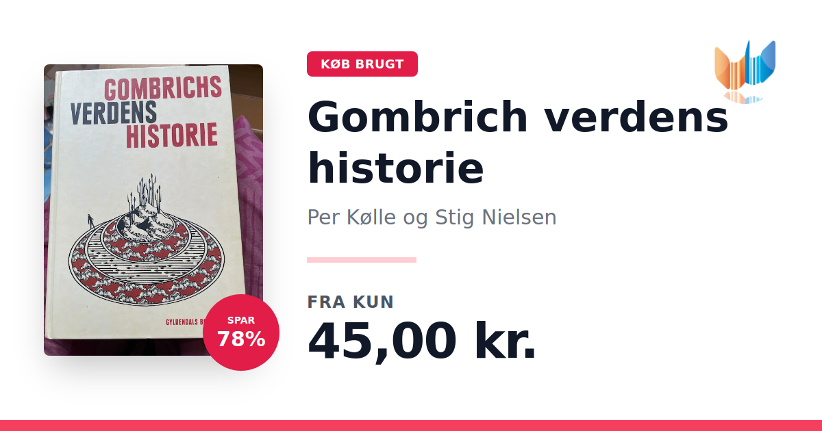 Lige nu kan du købe "Gombrich verdens historie" af Per Kølle og Stig Nielsen til kun 45,00 kr. Du sparer hele 78% af nyprisen! Bogen du ser her er brugt, og i god stand. Vi har i øjeblikket kun et enkelt eksemplar til salg af "Gombrich verdens historie", så slå til mens du kan!