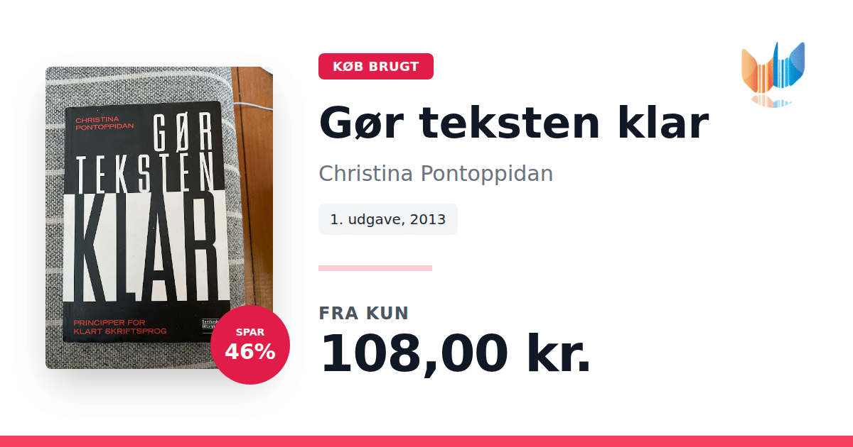 Christina Pontoppidans "Gør teksten klar" tilbyder en struktureret tilgang til skriftsprog og hjælper læseren med at mestre tekstens opbygning. Bogen fører gennem hele skriveprocessen og giver konkrete, trin-for-trin-anvisninger, der gør det nemt at følge med – fra de grundlæggende overvejelser omkring tekstens formål til de finere detaljer i tekstens opbygning. Med fokus på både teksten som helhed og de enkelte sætningers opbygning, afslører bogen de centrale principper for et klart og præcist sprog. Uanset om man skriver i arbejds-, studie- eller fritidssammenhæng, bliver læserens forståelse for skrivning styrket gennem praktiske råd og systematisk formidling af skrivehåndværket.