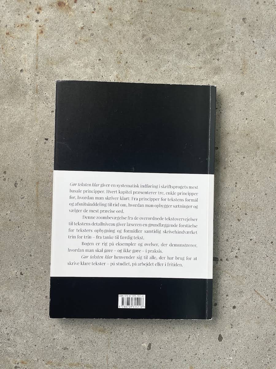 Christina Pontoppidans "Gør teksten klar" tilbyder en struktureret tilgang til skriftsprog og hjælper læseren med at mestre tekstens opbygning. Bogen fører gennem hele skriveprocessen og giver konkrete, trin-for-trin-anvisninger, der gør det nemt at følge med – fra de grundlæggende overvejelser omkring tekstens formål til de finere detaljer i tekstens opbygning. Med fokus på både teksten som helhed og de enkelte sætningers opbygning, afslører bogen de centrale principper for et klart og præcist sprog. Uanset om man skriver i arbejds-, studie- eller fritidssammenhæng, bliver læserens forståelse for skrivning styrket gennem praktiske råd og systematisk formidling af skrivehåndværket.