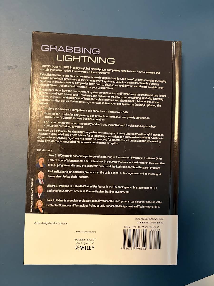 Grabbing Lightning offers a fresh perspective on breakthrough innovation, drawing from years of research involving twelve companies. G. C. O'Connor explores how established organizations can develop a sustainable capability for transformational change. The book challenges traditional management systems by demonstrating how a culture that embraces mistakes and encourages learning can pave the way for successful innovation. By outlining three essential building blocks of breakthrough innovation, the work distinguishes the discovery competency from conventional R&D, highlights the role of incubation in expanding new business opportunities, and examines acceleration strategies vital for embedding innovation within an organization. Grabbing Lightning provides practical insights and best practices for any organization seeking to reinvigorate its approach to innovation.
