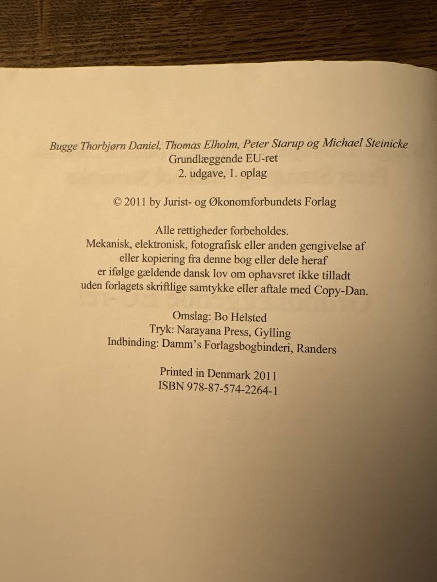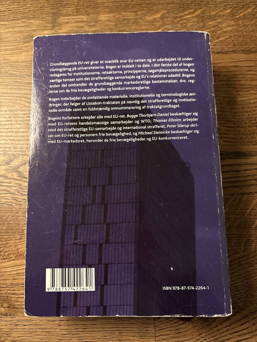 "Grundlæggende EU-ret" er en omfattende introduktion til EU-retten, udarbejdet med henblik på undervisning på universiteterne. Denne anden udgave, udgivet i 2015 og omfangende 819 sider, byder på et solidt fundament i EU's institutionelle struktur, retskilder og den grundlæggende retlige metode. Bogen er struktureret i to dele. I den første del redegøres der for EU’s institutioner, retsakter, principper samt de procedurer, der gælder for søgsmålsprocessen – herunder særlige aspekter som det strafferetlige samarbejde og EU's eksterne relationer. I den anden del fokuseres der på de basale markedsretlige bestemmelser, navnlig reglerne om de frie bevægeligheder og konkurrencereglerne. Samtidig indarbejdes de materielle, institutionelle og terminologiske forandringer, der følger af Lissabon-traktaten.