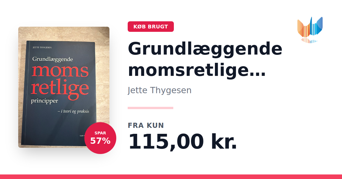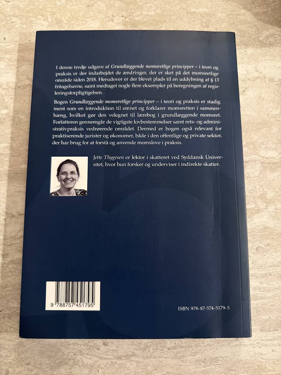 "Grundlæggende momsretlige principper" er en indsigtsfuld introduktion til momsrettens centrale regler og principper. Bogen byder på en sammenhængende fremstilling af, hvordan momssystemet fungerer, med både teoretiske forklaringer og praktiske eksempler, der illustrerer den daglige anvendelse af reglerne. Med sin klare og tilgængelige stil henvender Jette Thygesen sig til både studerende og erfarne praktikere inden for jura og økonomi. Som lektor i skatteret ved Syddansk Universitet trækker hun på sin omfattende faglige erfaring for at sikre en solid og opdateret fremstilling af det momsretlige område. Udgivet i 2021 af Djøf Forlag, er denne bog et værdifuldt redskab for alle, der ønsker at få en grundlæggende forståelse af momslovgivningen.