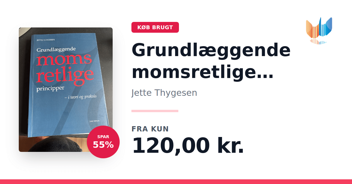 Lige nu kan du købe "Grundlæggende momsretlige principper" af Jette Thygesen til kun 120,00 kr. Du sparer hele 55% af nyprisen! Bogen du ser her er brugt, og i perfekt stand. Vi har i øjeblikket 2 eksemplarer til salg af "Grundlæggende momsretlige principper", så husk at se de forskellige udgaver.