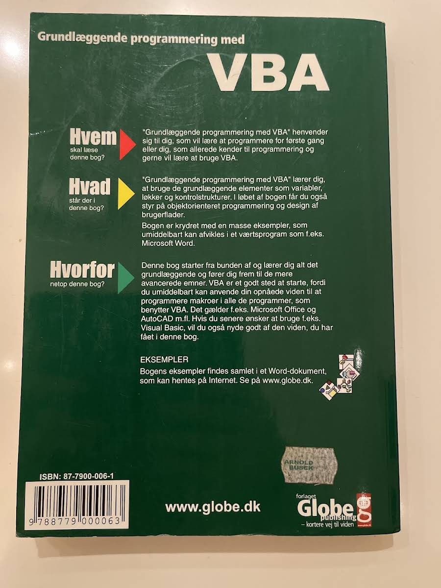 Grundlæggende Programmering med VBA er en praktisk introduktion til VBA-sprogets grundprincipper, målrettet både nybegyndere og erfarne programmører, der ønsker at mestre makroudvikling. Bogen fører dig systematisk fra de helt basale koncepter til mere avancerede teknikker. Du lærer at opbygge scripts og makroer i programmer, der understøtter VBA - for eksempel Microsoft Office-pakken og AutoCAD - og får træning i at tilpasse og automatisere gentagne opgaver effektivt. Gennem kapitler om variabler, løkker, kontrolstrukturer, objektorienteret programmering og design af brugerflader præsenteres teorien altid i samspil med konkrete eksempler og kodebidder, som du kan afprøve med det samme. Med sine 326 sider er bogen spækket med øvelser og illustrative cases, der ikke alene giver dig et solidt fundament i VBA, men også forbereder dig på at fortsætte din udvikling i for eksempel Visual Basic.