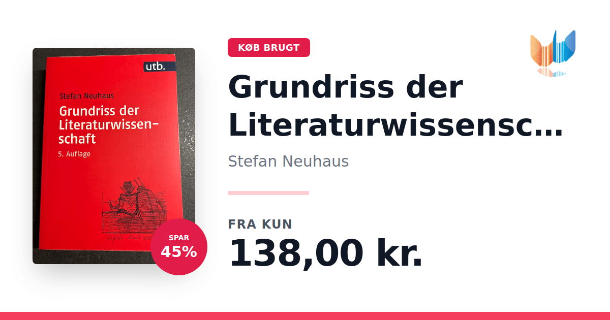 Lige nu kan du købe "Grundriss der Literaturwissenschaft" af Stefan Neuhaus til kun 138,00 kr. Du sparer hele 45% af nyprisen! Bogen du ser her er brugt, og i perfekt stand. Vi har i øjeblikket kun et enkelt eksemplar til salg af "Grundriss der Literaturwissenschaft", så slå til mens du kan!