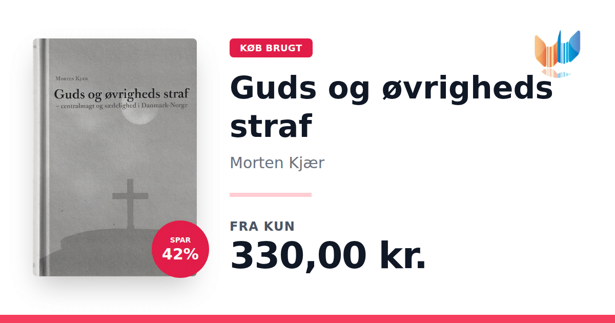 Lige nu kan du købe "Guds og øvrigheds straf" af Morten Kjær til kun 330,00 kr. Du sparer hele 42% af nyprisen! Bogen du ser her er brugt, og i perfekt stand. Vi har i øjeblikket kun et enkelt eksemplar til salg af "Guds og øvrigheds straf", så slå til mens du kan!