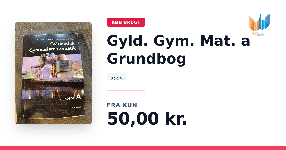 Lige nu kan du købe "Gyld. Gym. Mat. a Grundbog" til kun 50,00 kr. Bogen du ser her er brugt, og i god stand. Vi har i øjeblikket kun et enkelt eksemplar til salg af "Gyld. Gym. Mat. a Grundbog", så slå til mens du kan!