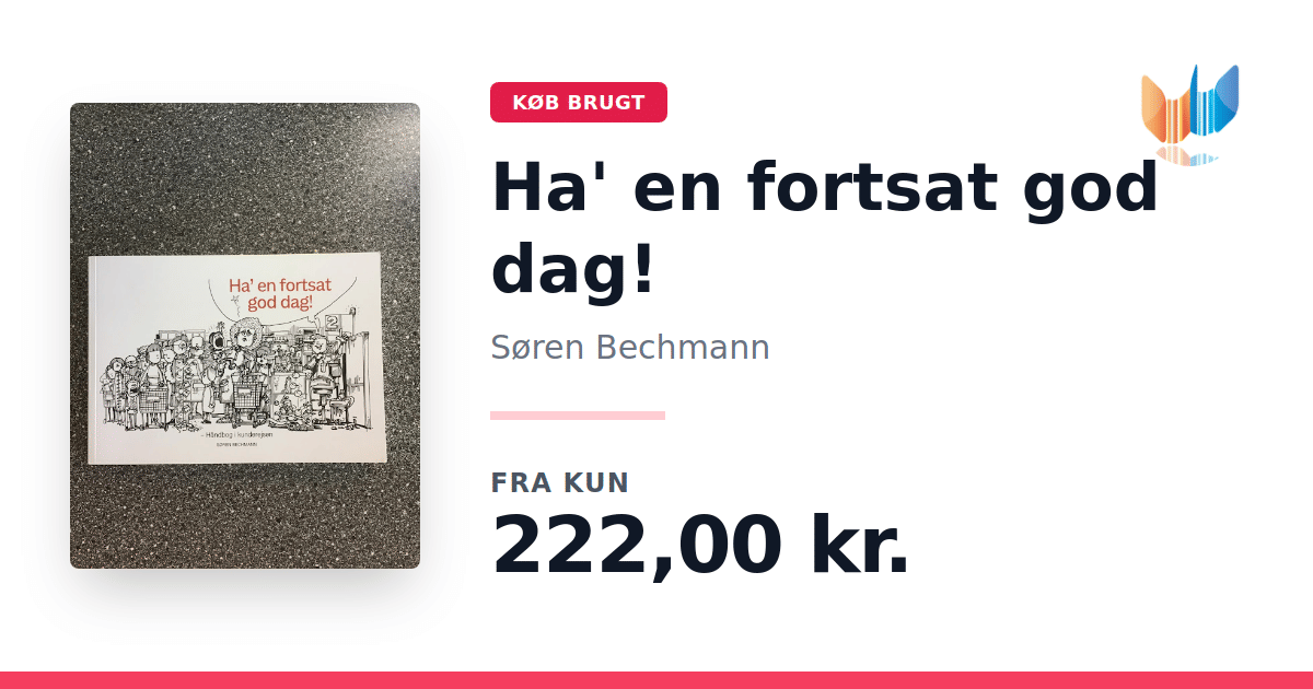 Lige nu kan du købe "Ha' en fortsat god dag!" af Søren Bechmann til kun 222,00 kr. Bogen du ser her er brugt, og i perfekt stand. Vi har i øjeblikket kun et enkelt eksemplar til salg af "Ha' en fortsat god dag!", så slå til mens du kan!