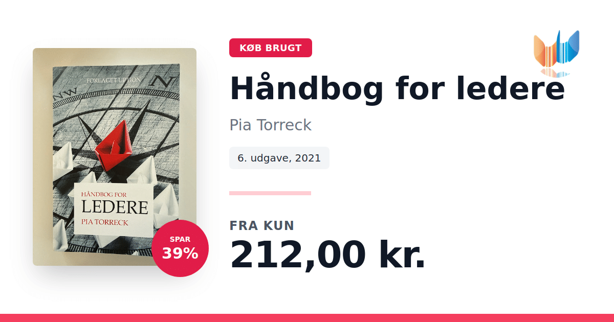Lige nu kan du købe "Håndbog for ledere" af Pia Torreck til kun 212,00 kr. Du sparer hele 39% af nyprisen! Bogen du ser her er brugt, og i perfekt stand. Vi har i øjeblikket kun et enkelt eksemplar til salg af "Håndbog for ledere", så slå til mens du kan!