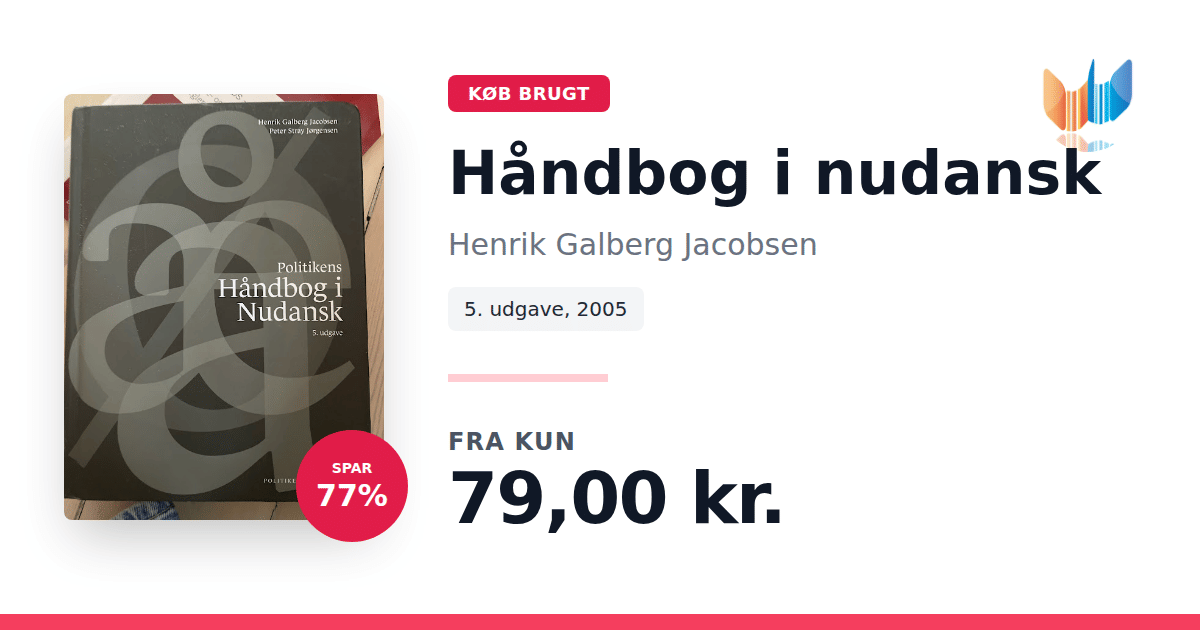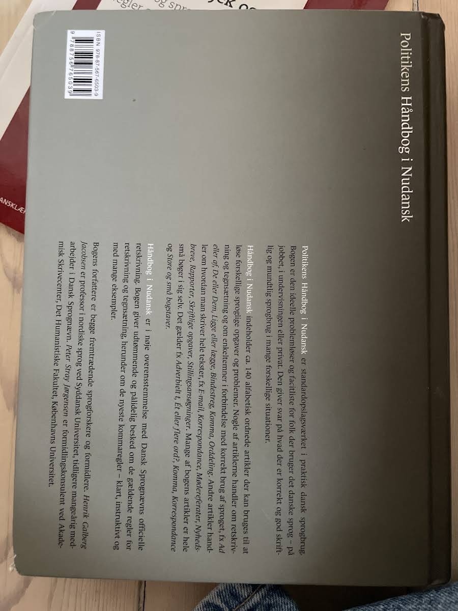 Siden introduktionen har Håndbog i nudansk fast etableret sig som et uundværligt redskab for den, der ønsker at bruge dansk på en korrekt og præcis måde – både skriftligt og mundtligt. I den femte udgave har Henrik Galberg Jacobsen nøje opdateret og omstruktureret standardværket, så det afspejler moderne sprogbrug og gældende retskrivningsregler. Blandt de ca. 140 artikler er flere emner fuldstændig nyskrevne, eksempelvis om forhandlinger, nyhedsbreve og skriftlige opgaver, mens andre emner, såsom argumentation, disposition og kommatering, er tilpasset de officielle kommaregler fra 2004. De velkendte bokse med præcise tips – både ’Kort og godt om’ og de instruktive ’Gør sådan’ – understøtter læseren med konkrete råd, der gør det nemmere at navigere i det danske sprog.