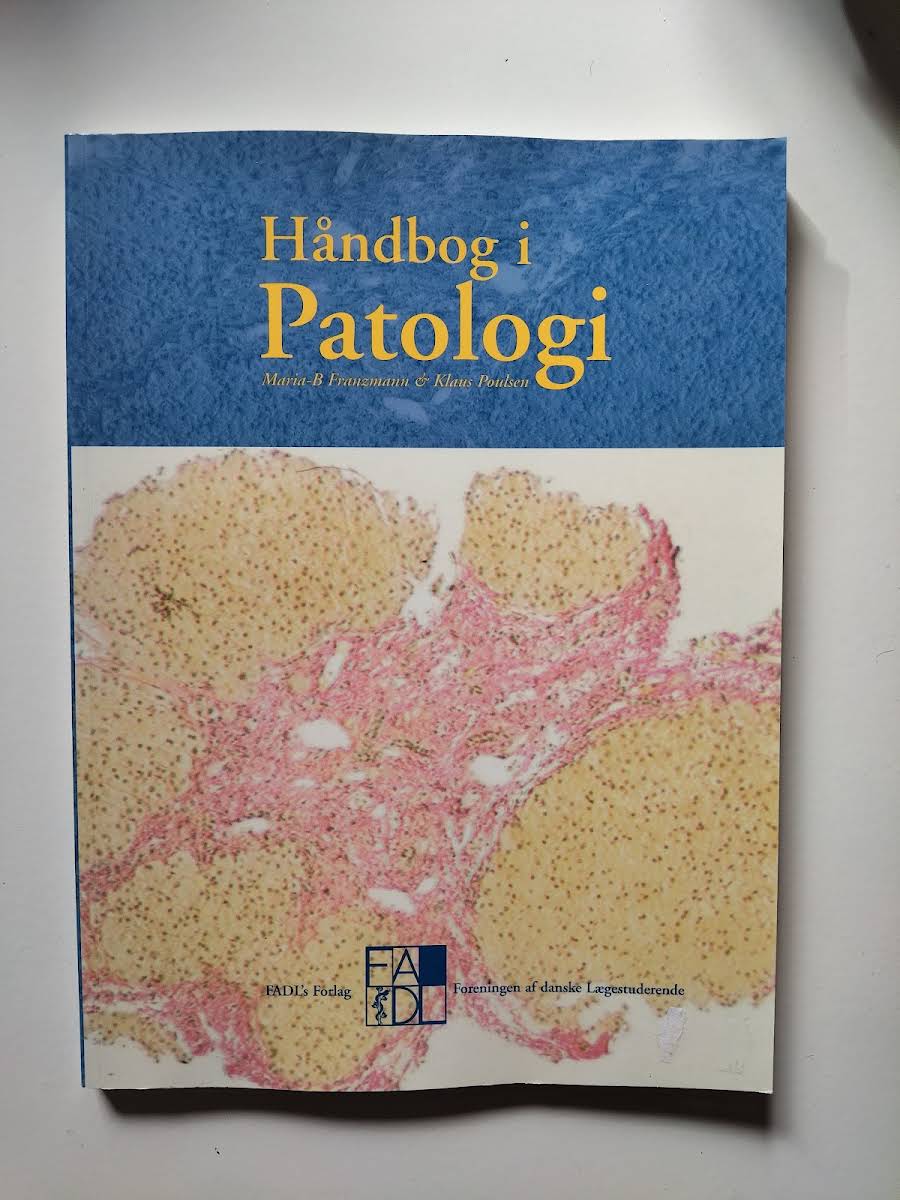 Bogen "Håndbog i Patologi" af Marie B. Franzmann og Klaus Poulsen. Bogen er udgivet af FADL's Forlag, som er Foreningen af danske Lægestuderende. Patologi er læren om sygdomme, deres årsager, opståelsesmekanismer og hvordan de viser sig i kroppen. Patologer er speciallæger, der undersøger vævsprøver for at stille diagnoser, ofte med henblik på at diagnosticere kræft. Bogen fungerer som et opslagsværk og supplement til undervisning for medicinstuderende.