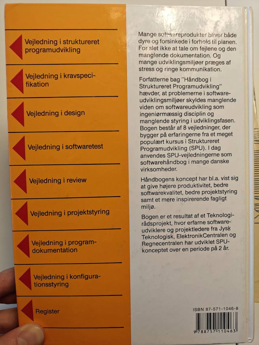 I takt med at mange softwareprojekter lider under forsinkelser, stigende omkostninger og mangel på dokumentation, fremhæver Håndbog i Struktureret Programudvikling vigtigheden af en systematisk tilgang til softwareudvikling som en ingeniørmæssig disciplin. Stephen Biering-Sørensen præsenterer her en metode, der skal bidrage til øget produktivitet, forbedret softwarekvalitet og et mere struktureret udviklingsmiljø. Bogen bygger på erfaringerne fra et populært kursus i Struktureret Programudvikling (SPU) og indeholder otte praktiske vejledninger, der tilsammen danner en omfattende softwarehåndbog. Vejledningerne er: • Vejledning i struktureret • Vejledning i kravspecifikation • Vejledning i design • Vejledning i softwaretest • Vejledning i review • Vejledning i projektstyring • Vejledning i programdokumentation • Vejledning i konfigurationstyring Håndbogen, der blev udgivet af Ingeniøren-bøger i 2002 og omfatter 361 sider, er et resultat af et intensivt projekt med input fra erfarne udviklere og projektledere. Den giver et solidt fundament for at håndtere de udfordringer, der ofte opstår i softwareudviklingsprocessen og bidrager til en mere kontrolleret og vellykket projektgennemførelse.