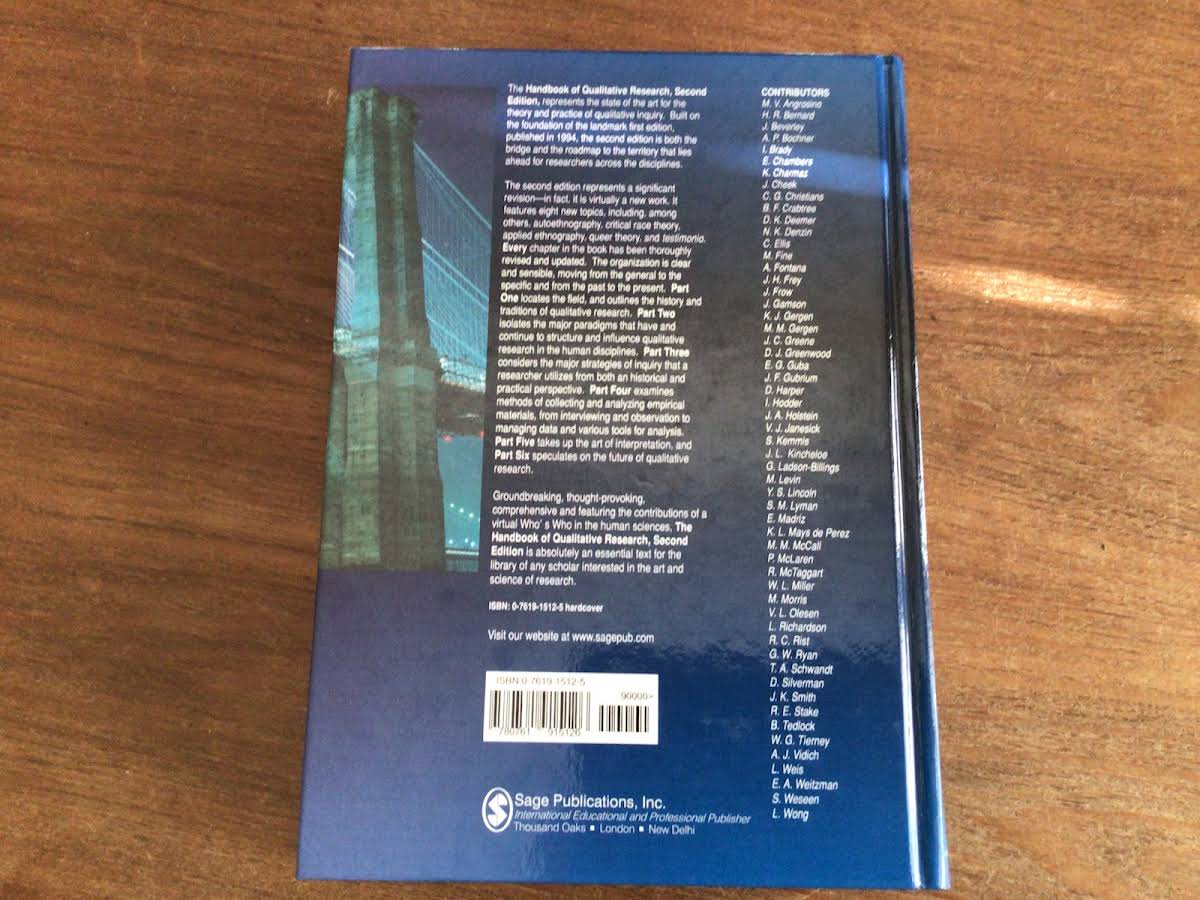 Handbook of Qualitative Research, anden udgave (2000), redigeret af Norman K. Denzin og Yvonna S. Lincoln, er en omfattende opdatering af det banebrydende værk fra 1994. Denne paperbackudgave på 1143 sider præsenterer kvalitativ forskning på et helt nyt niveau og fungerer både som referenceramme og inspirationskilde for forskere på tværs af discipliner. Med seks nye kapitler om emner som autoetnografi, kritisk raceteori, anvendt etnografi, queer teori og vidnesbyrd samt yderligere femten bidrag fra nye forfattere, er hver enkelt tekst gennemarbejdet og ajourført. Resultatet er et næsten helt nyt værk, der indfanger de nyeste diskussioner og metoder inden for kvalitativ undersøgelse. I begyndelsen af det 21. århundrede er det essentielt at genopdage kvalitativ forskning som en kreativ og reflekterende forskningsform. Dette håndbogsværk viser, hvordan kvalitative diskurser kan bidrage til at forestille sig og skabe et frit og demokratisk samfund samt beriger alle, der interesserer sig for forskningens kunst og videnskab.
