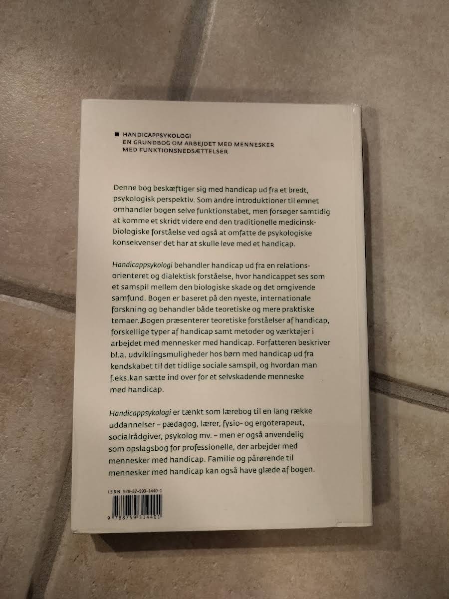 "Handicappsykologi" giver et indsigtsfuldt overblik over handicap, hvor Jesper Dammeyer og Louise Bøttcher kombinerer den medicinsk-biologiske tilgang med et dybt psykologisk perspektiv. Bogen undersøger, hvordan funktionstabet påvirker den enkelte og de psykologiske konsekvenser, der følger med både fysiske og psykiske udfordringer. Med udgangspunkt i den nyeste internationale forskning præsenterer forfatterne en relationsorienteret og dialektisk forståelse af handicap. De illustrerer, hvordan samspillet mellem den individuelle skade og de omstændigheder, vi lever i, former oplevelsen af at have et handicap. Denne grundbog giver læseren både teoretiske indsigter og praktiske perspektiver i håndteringen af funktionsnedsættelser.