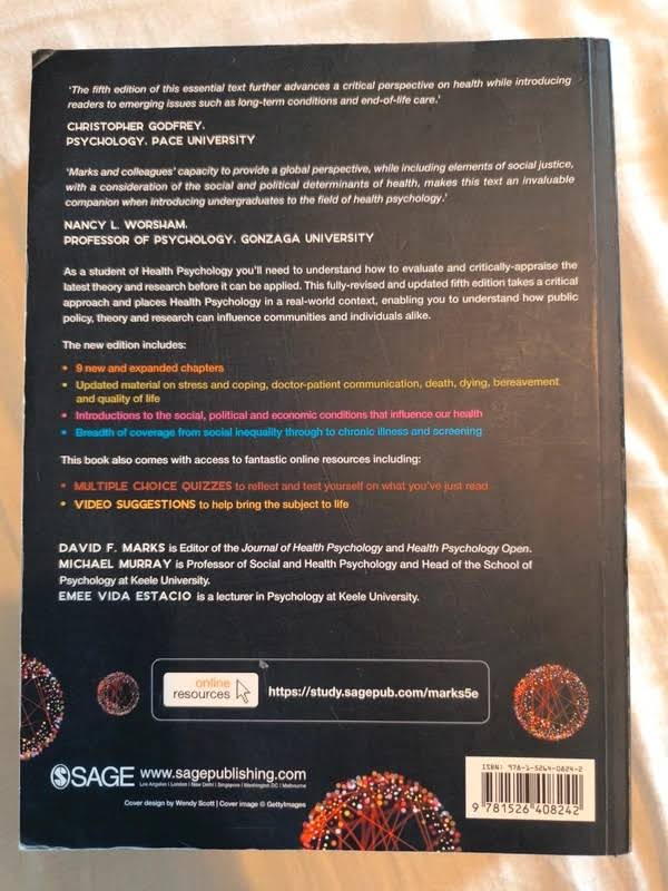 Health Psychology - Theory, Research and Practice Af David F. Marks, Michael Murray og Emee Vida Estacio Ingen overstregninger Studiebog
