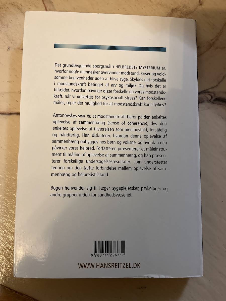 For første gang præsenteres denne klassiske undersøgelse af stress og modstandskraft på dansk. I Helbredets mysterium stiller Aaron Antonovsky skarpt på, hvordan visse mennesker formår at håndtere modgang, kriser og livets voldsomme begivenheder uden at lade helbredet svigte dem. Bogen udforsker ideen om, at modstandskraft afhænger af den enkeltes oplevelse af sammenhæng – en følelse af tilværelsen som meningsfuld, forståelig og håndterlig. Gennem en række undersøgelsesresultater og introduktion af et særligt måleinstrument giver Antonovsky læseren et unikt indblik i, hvordan både børn og voksne opbygger en robust modstandsdygtighed. Hans analyser udfolder, hvordan denne oplevelse af sammenhæng spiller en afgørende rolle for vores fysiske og psykiske helbred. Helbredets mysterium er dermed en uundværlig bog for alle, der interesserer sig for sundhedspsykologi og stressforskning. Udgivet af Hans Reitzels Forlag i 2003 og trykt som paperback, byder denne første danske udgave på en tankevækkende og dybdegående tilgang til, hvordan vi kan forstå og styrke vores personlige modstandskraft.