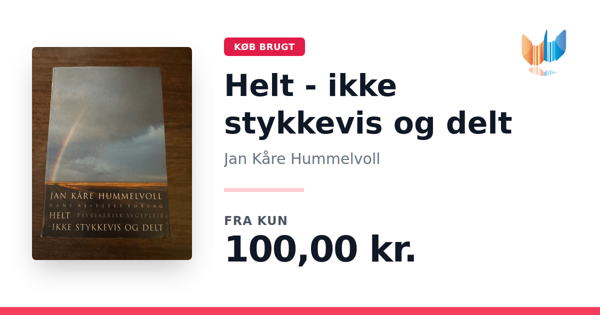 Lige nu kan du købe "Helt - ikke stykkevis og delt" af Jan Kåre Hummelvoll til kun 100,00 kr. Bogen du ser her er brugt, og i god stand. Vi har i øjeblikket kun et enkelt eksemplar til salg af "Helt - ikke stykkevis og delt", så slå til mens du kan!