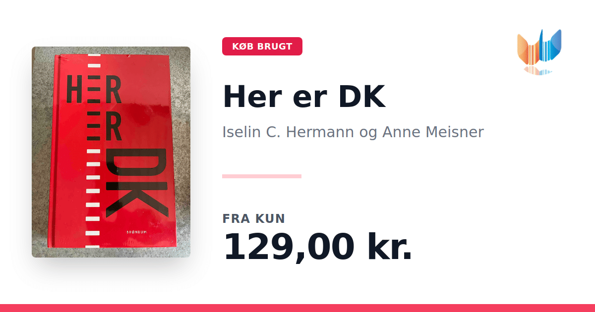 Lige nu kan du købe "Her er DK" af Iselin C. Hermann og Anne Meisner til kun 129,00 kr. Du sparer hele 54% af nyprisen! Bogen du ser her er brugt, og i perfekt stand. Vi har i øjeblikket kun et enkelt eksemplar til salg af "Her er DK", så slå til mens du kan!