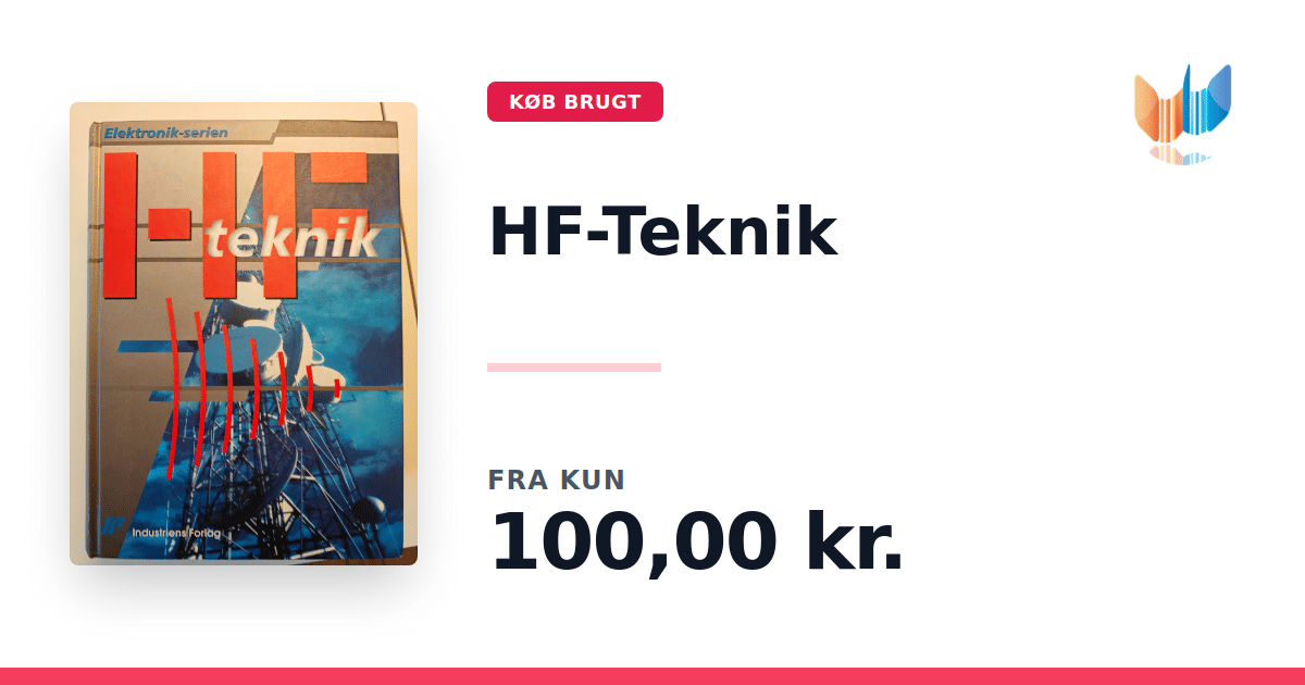 Lige nu kan du købe "HF-Teknik" til kun 100,00 kr. Bogen du ser her er brugt, og i god stand. Vi har i øjeblikket kun et enkelt eksemplar til salg af "HF-Teknik", så slå til mens du kan!