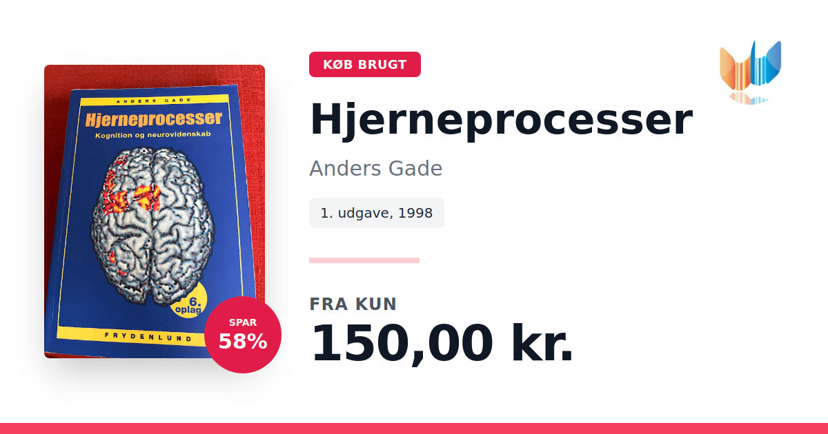 Lige nu kan du købe "Hjerneprocesser" af Anders Gade til kun 150,00 kr. Du sparer hele 58% af nyprisen! Bogen du ser her er brugt, og i god stand. Vi har i øjeblikket 4 eksemplarer til salg af "Hjerneprocesser", så husk at se de forskellige udgaver.