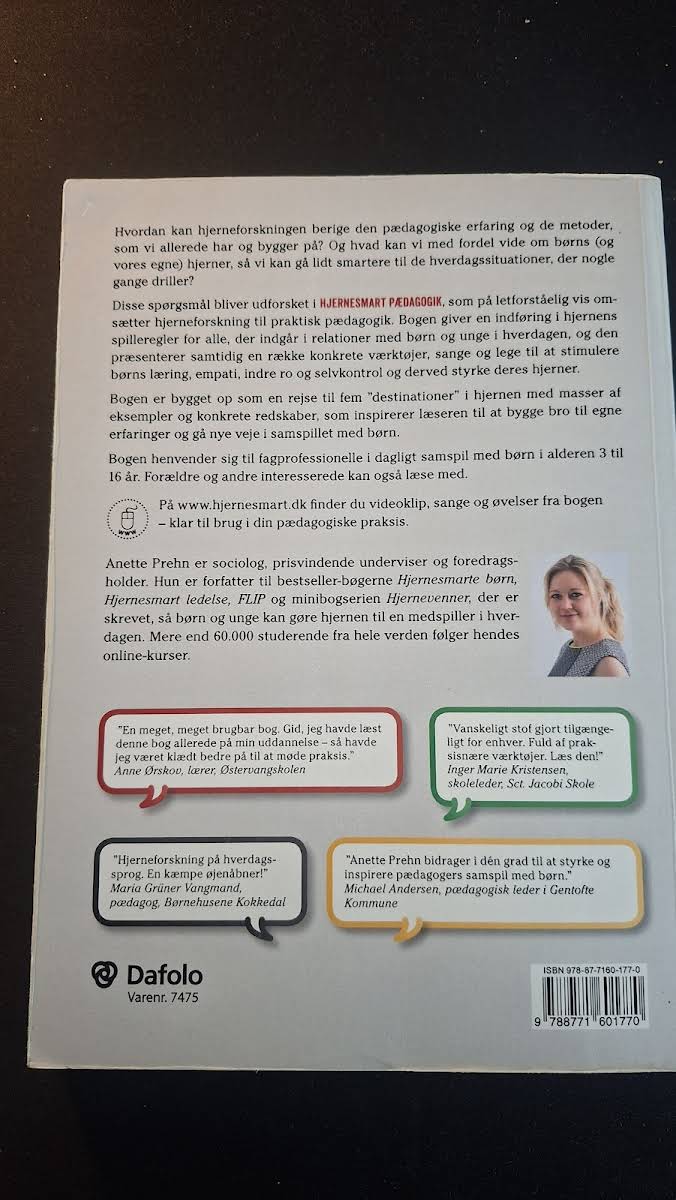 Hjernesmart pædagogik omsætter kompleks hjerneforskning til praktiske redskaber, der kan styrke børns læring, empati, indre ro og selvkontrol. Med et letforståeligt sprog præsenterer Anette Prehn vigtige indsigter i hjernens spilleregler og giver samtidig konkrete værktøjer, sange og lege, som både pædagoger og forældre kan anvende i dagligdagen. Bogen tager læseren med på en inspirerende rejse gennem fem centrale 'destinationer' i hjernen, hvor teorierne møder praktikken. Gennem en række illustrative eksempler får man mulighed for at bygge bro mellem eksisterende pædagogiske erfaringer og nye metoder, der understøtter arbejdet med børn i alderen 3 til 16 år. Med sin første udgave fra 2015 er Hjernesmart pædagogik en værdifuld ressource, der på ny måde belyser, hvordan hjernevidenskaben kan berige den pædagogiske praksis. Oplev, hvordan konkrete redskaber og aktiviteter kan inspirere til udvikling og vækst hos de børn, vi alle ønsker at se trives i hverdagen.