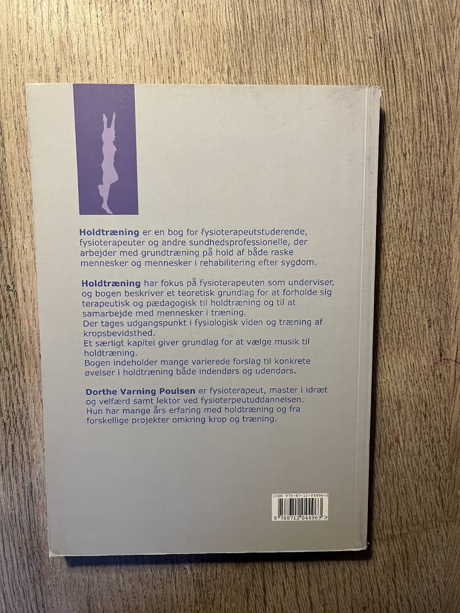 I "Holdtræning" præsenterer Dorthe Varning Poulsen et solidt teoretisk fundament for terapeutisk og pædagogisk holdtræning. Med udgangspunkt i fysiologisk viden og træning af kropsbevidsthed, udfolder bogen konkrete forslag til, hvordan man planlægger og udfører øvelser i grupper, både indendørs og udendørs. Bogen henvender sig til fysioterapeutstuderende, fysioterapeuter og andre sundhedsprofessionelle, der arbejder med grundtræning af både raske og personer i rehabilitering. Med illustrative tegninger, der understøtter øvelserne, tilbyder "Holdtræning" et alsidigt redskab til den professionelle underviser og praktiker.