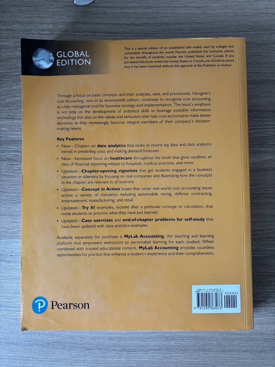 Horngren's Cost Accounting, Global Edition is a comprehensive resource designed for both undergraduate and MBA programs in cost or management accounting. The book skillfully combines foundational cost accounting procedures with modern research and contemporary management insights, ensuring that its readers grasp the essential concept that "different costs are used for different purposes." Now in its 17th edition, this text continues to evolve by integrating the latest theoretical developments and practical approaches into every chapter. With its detailed analyses, updated frameworks, and a focus on real-world application, the book prepares students to navigate the challenges of today’s dynamic cost accounting landscape with confidence and clarity.