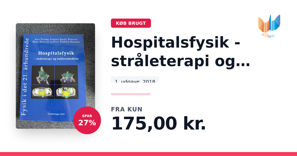 Lige nu kan du købe "Hospitalsfysik - stråleterapi og nuklearmedicin" til kun 175,00 kr. Du sparer hele 27% af nyprisen! Bogen du ser her er brugt, og i perfekt stand. Vi har i øjeblikket kun et enkelt eksemplar til salg af "Hospitalsfysik - stråleterapi og nuklearmedicin", så slå til mens du kan!