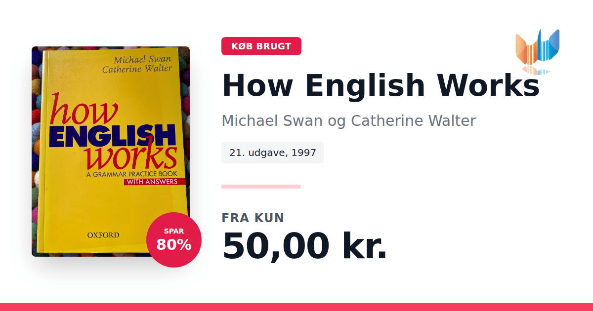 Lige nu kan du købe "How English Works" af Michael Swan og Catherine Walter til kun 50,00 kr. Du sparer hele 80% af nyprisen! Bogen du ser her er brugt, og i god stand. Vi har i øjeblikket kun et enkelt eksemplar til salg af "How English Works", så slå til mens du kan!