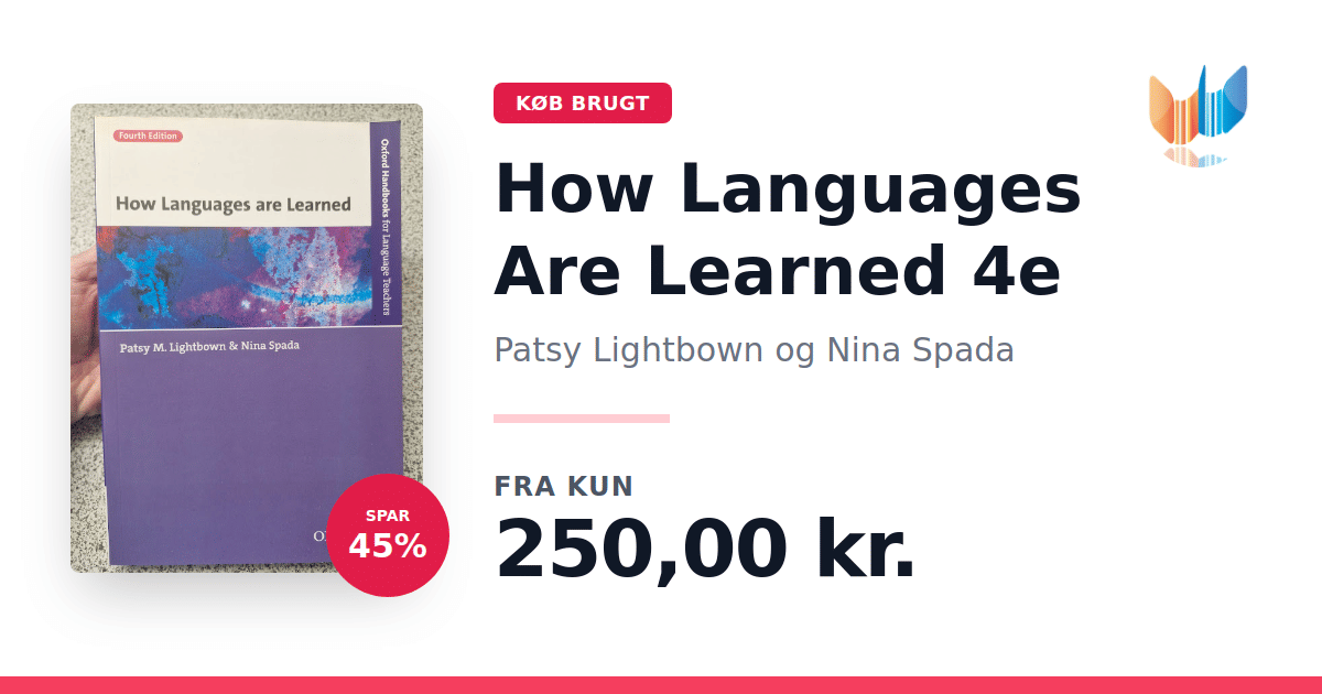 How Languages Are Learned 4. udgave af Patsy Lightbown og Nina Spada er en grundigt opdateret og let tilgængelig indføring i sprogtilegnelse, udgivet i 2013 af Oxford University Press som paperback. Bogen præsenterer centrale teorier og koncepter, der forklarer, hvordan sprog indlæres, og giver læseren et klart overblik over både historiske og nyere forskningsresultater. Med fokus på at bygge bro mellem teori og praksis trækker forfatterne konsekvente pædagogiske implikationer ud af forskningen og viser, hvordan disse kan anvendes direkte i klasseværelset. Denne 304-siders håndbog er uundværlig både for studerende på læreruddannelser og for nye såvel som erfarne undervisere, der ønsker at styrke deres sprogtilegnelsesundervisning.