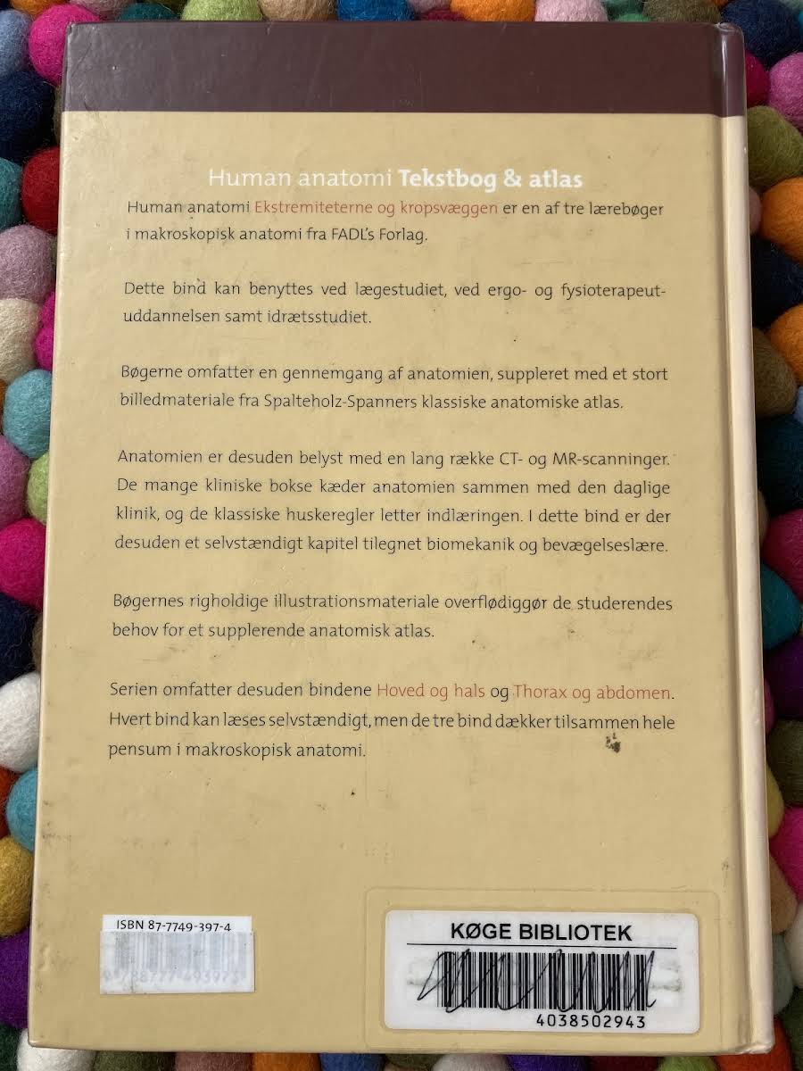 Bogen "Human anatomi Tekstbog & atlas - Ekstremiteterne & kropsvæggen". Forfattere: M. E. Matthiessen, M. R. Krogsgaard, Klaus Poulsen & O. W. Petersen Forlag: Falds forlag Udgave år: 2. udgave, 2006