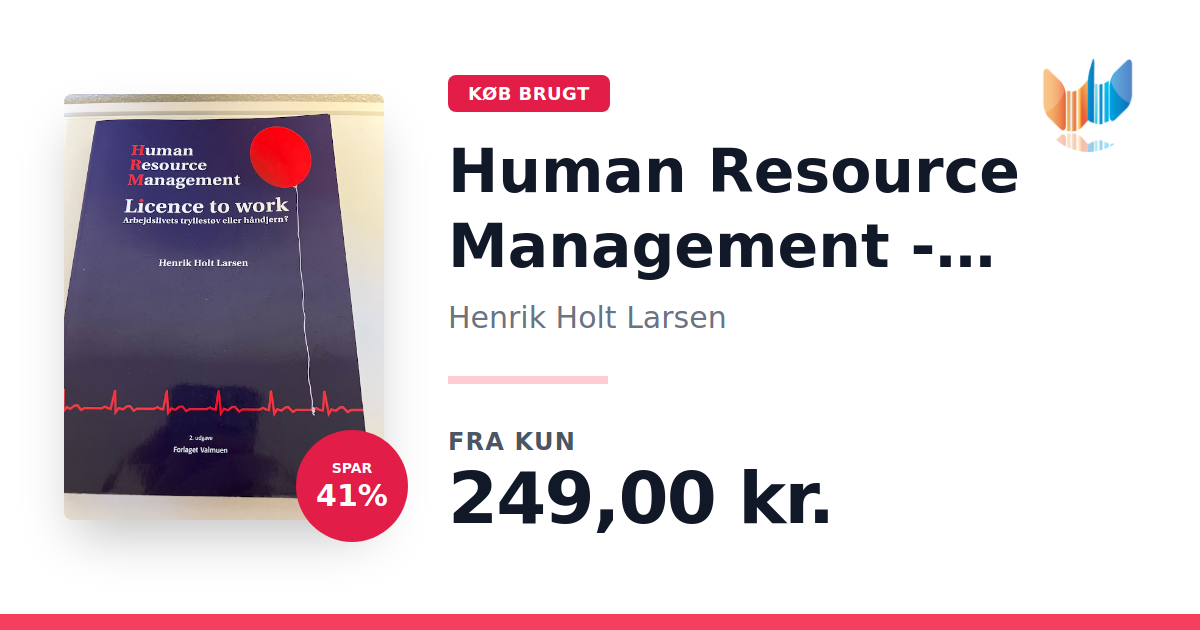 Human Resource Management – Licence to Work af Henrik Holt Larsen præsenterer en dybdegående analyse af HRM's centrale rolle i samspillet mellem medarbejder, jobfunktion, ledelse og den overordnede virksomhedsstruktur. Bogen redegør for de fundamentale nøglebegreber og sætter fokus på, hvordan disse elementer påvirker organisationens daglige drift. Med udgangspunkt i den mest relevante forskning og praktiske eksempler belyser værket, hvordan man effektivt kan implementere HRM-principper i hverdagen. Udgivet i 2010 af Valmuen, Forlaget og trykt som paperback med 460 sider, tilbyder denne bog vigtige redskaber til dem, der ønsker et solidt grundlag inden for human resource management.