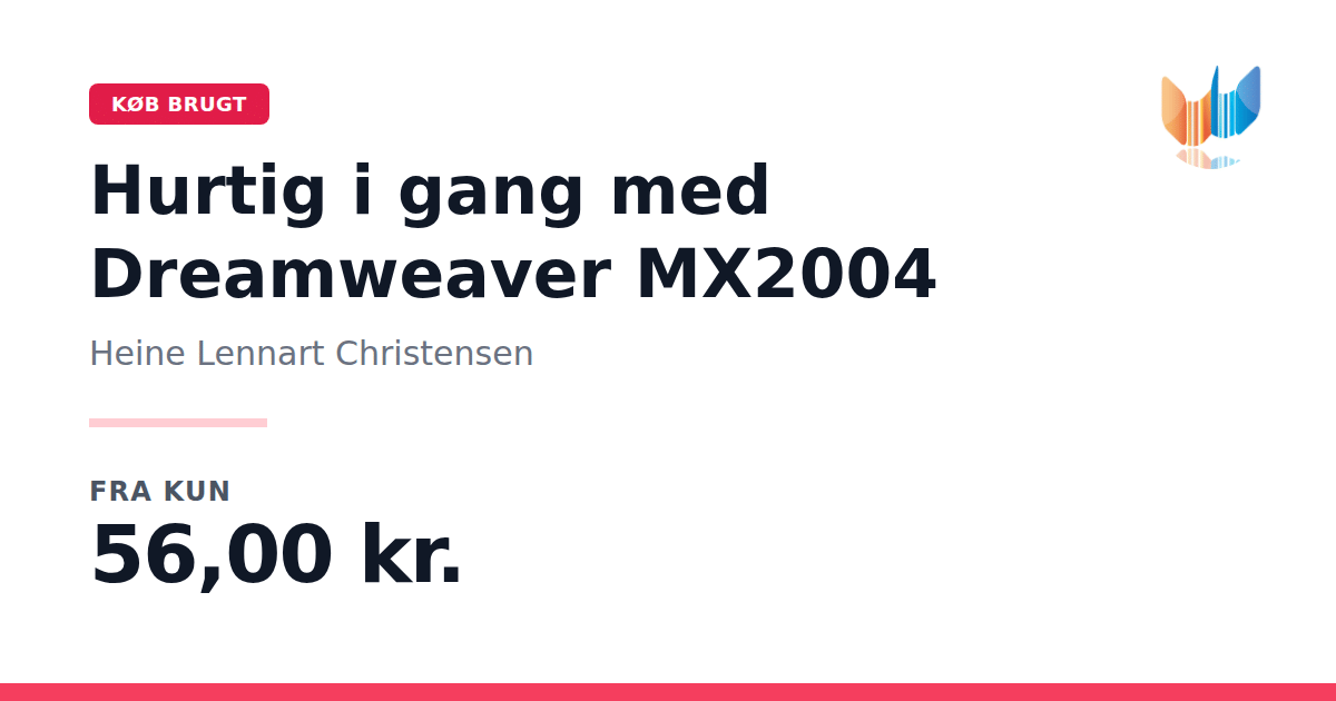 Lige nu kan du købe "Hurtig i gang med Dreamweaver MX2004" af Heine Lennart Christensen til kun 56,00 kr. Bogen du ser her er brugt, og i perfekt stand. Vi har i øjeblikket kun et enkelt eksemplar til salg af "Hurtig i gang med Dreamweaver MX2004", så slå til mens du kan!