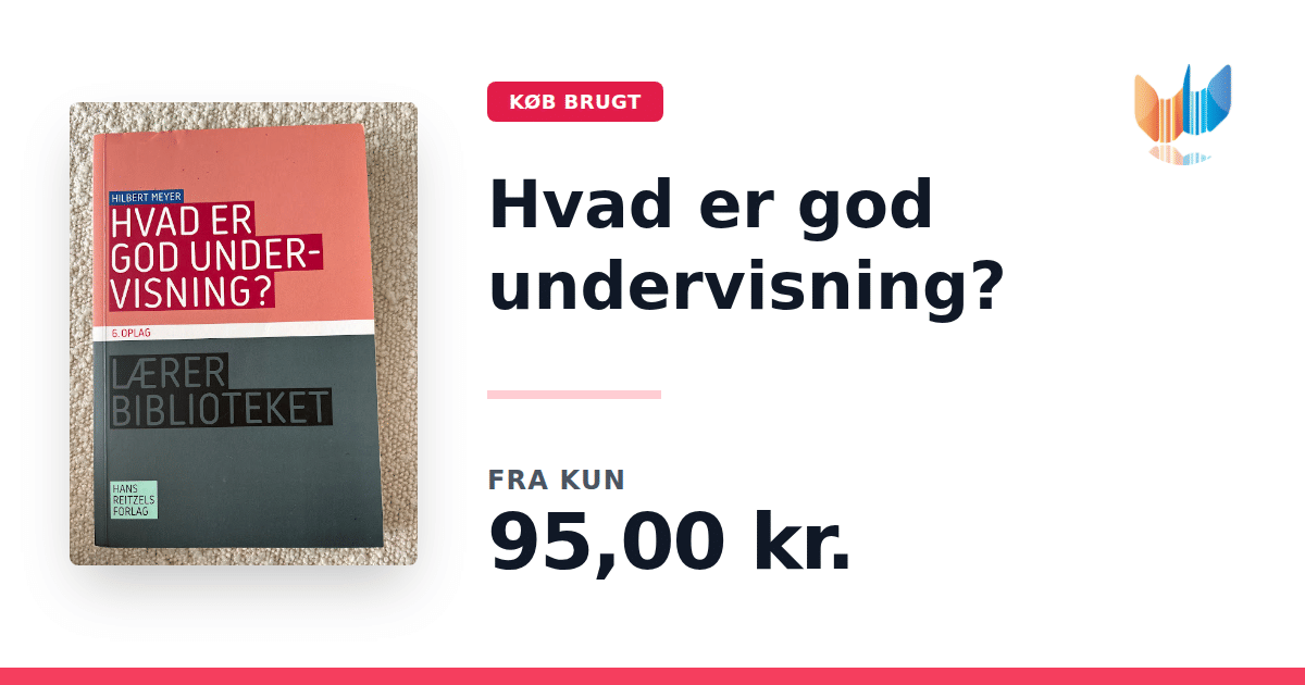Lige nu kan du købe "Hvad er god undervisning?" til kun 95,00 kr. Bogen du ser her er brugt, og i god stand. Vi har i øjeblikket kun et enkelt eksemplar til salg af "Hvad er god undervisning?", så slå til mens du kan!